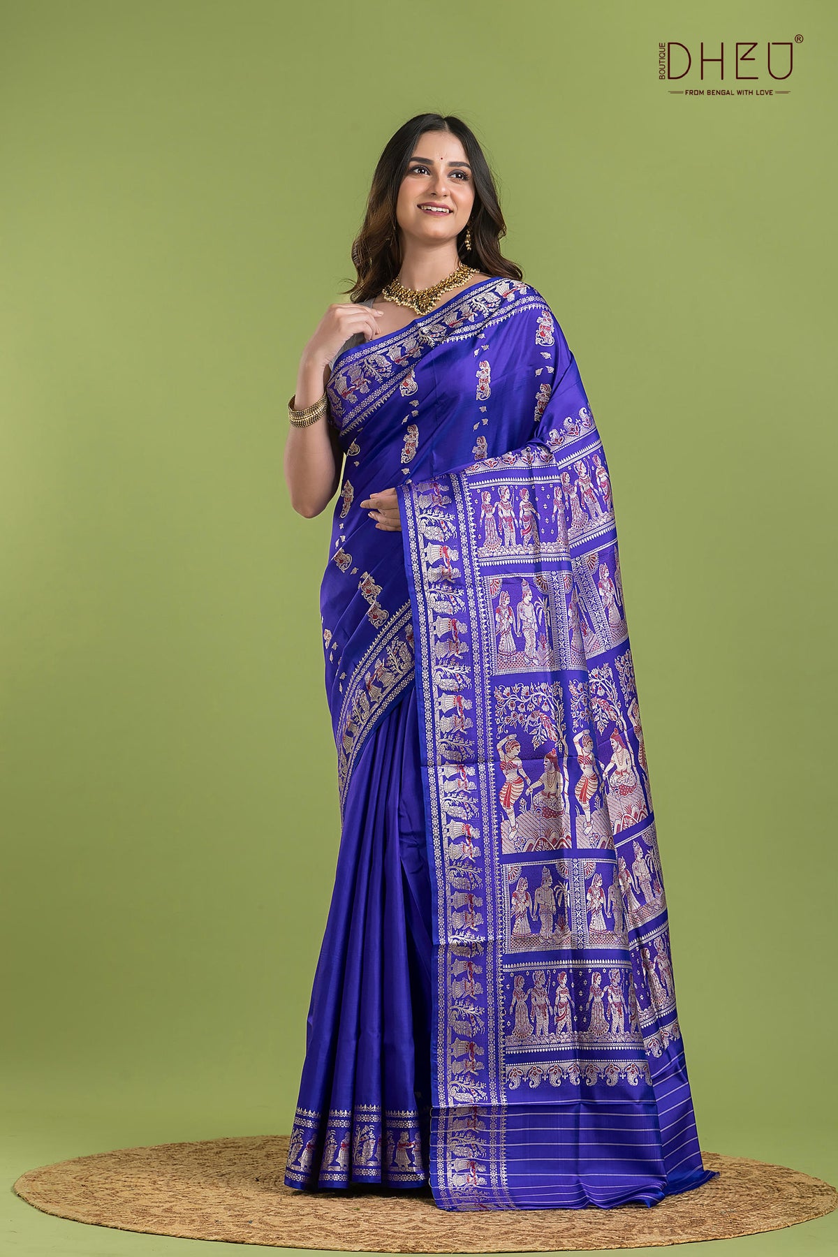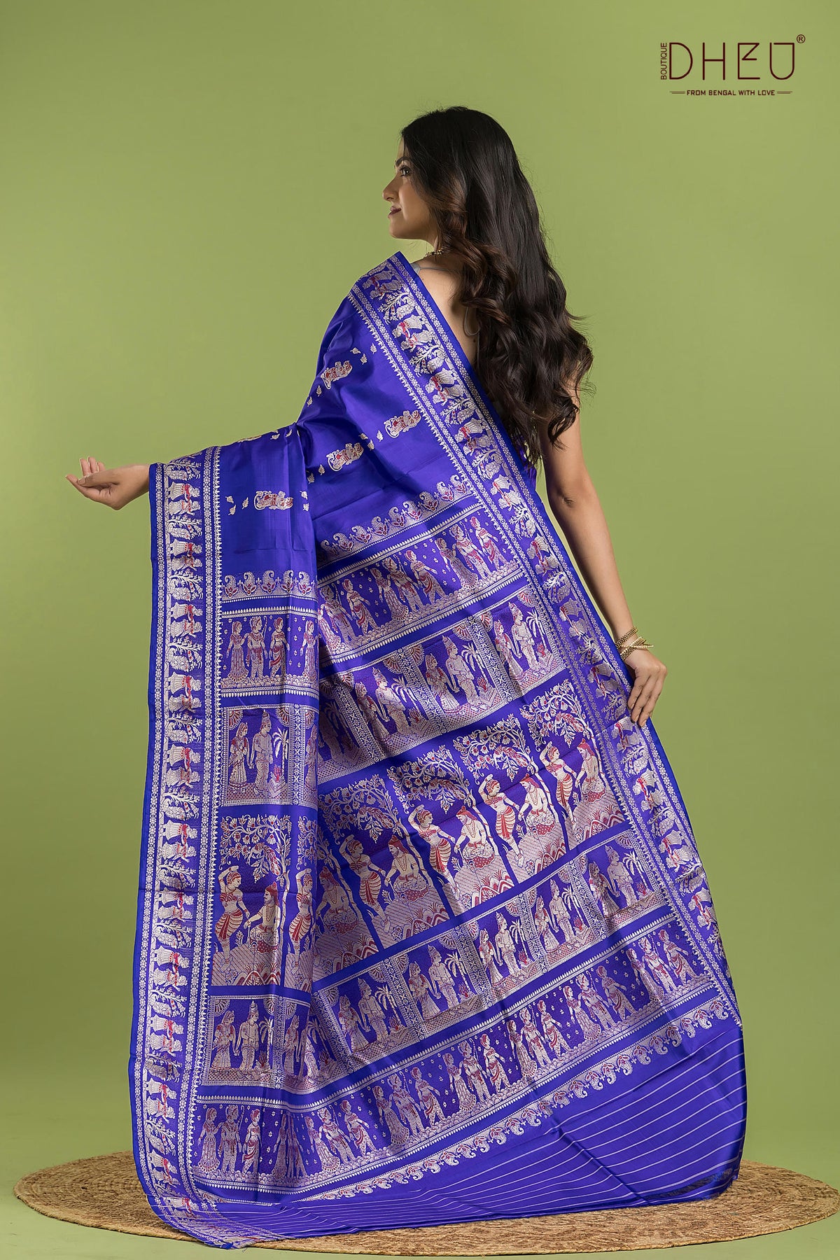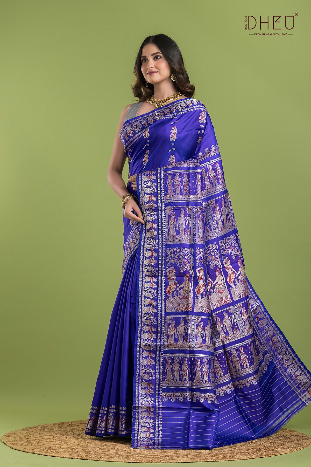 Experience the timeless grandeur of Bengal’s legendary weaving tradition with this Pure Swarnachari Silk Saree. Woven from 100% pure mulberry silk and Silk Mark Certified, this saree guarantees authenticity, superior quality, and long-lasting elegance. The saree features traditional designs inspired by mythology, nature, and royal heritage. The luxurious silk fabric drapes effortlessly, offering unmatched comfort and a regal silhouette. Delicate zari work and finely detailed borders enhance its opulence, making it a treasured heirloom piece.