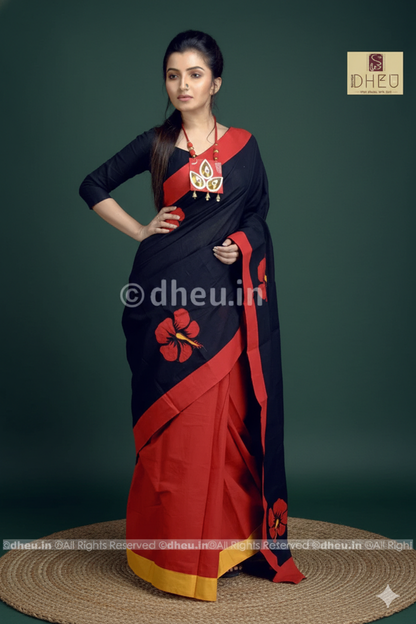 - Handloom Dheu Exclusive Applique Saree with Blouse pc