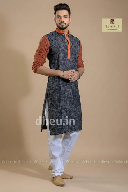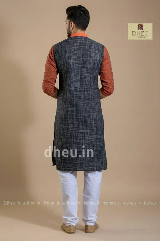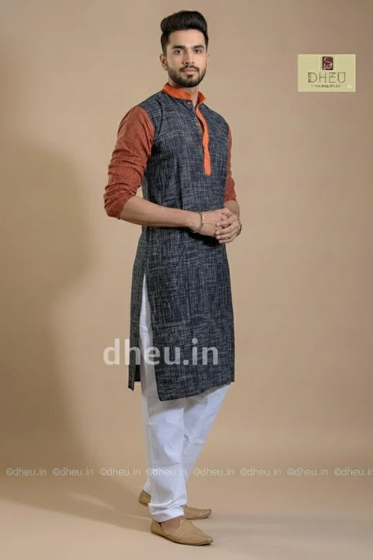 • Colour of the Kurta Black with Orange Collar and Hand Portion Orange Colour
