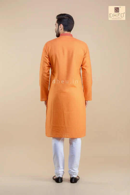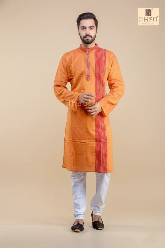 • Handwoven Rust orange Cotton Kurta for Men