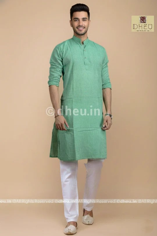 - Handwoven Sea green Cotton Kurta for Men