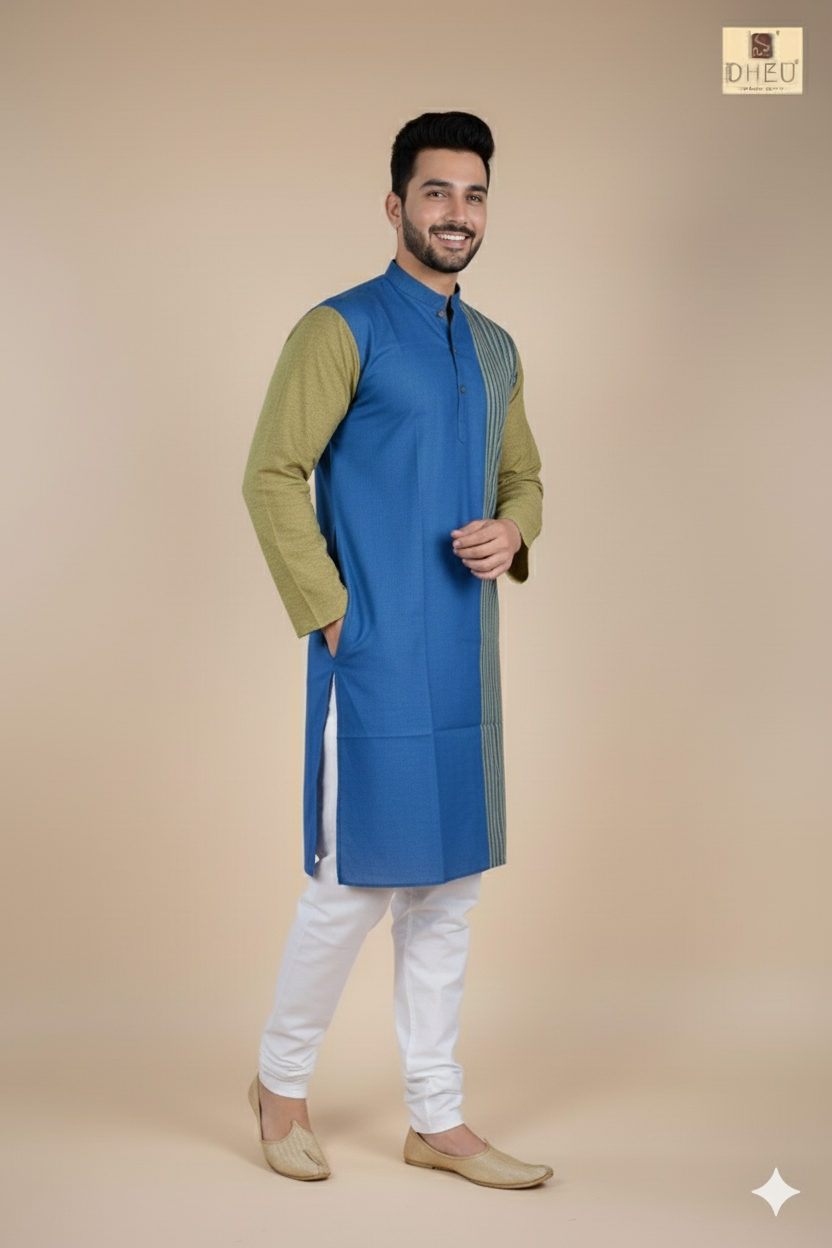• Handwoven Moss Green Stripe Cotton Kurta for Me