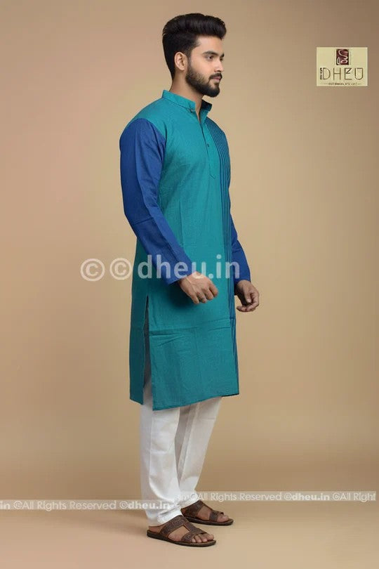 - Handwoven Blue Stripe Cotton Kurta for Men