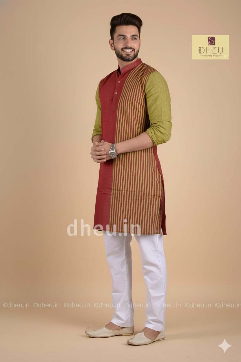- Handwoven Blue Stripe Cotton Kurta for Men