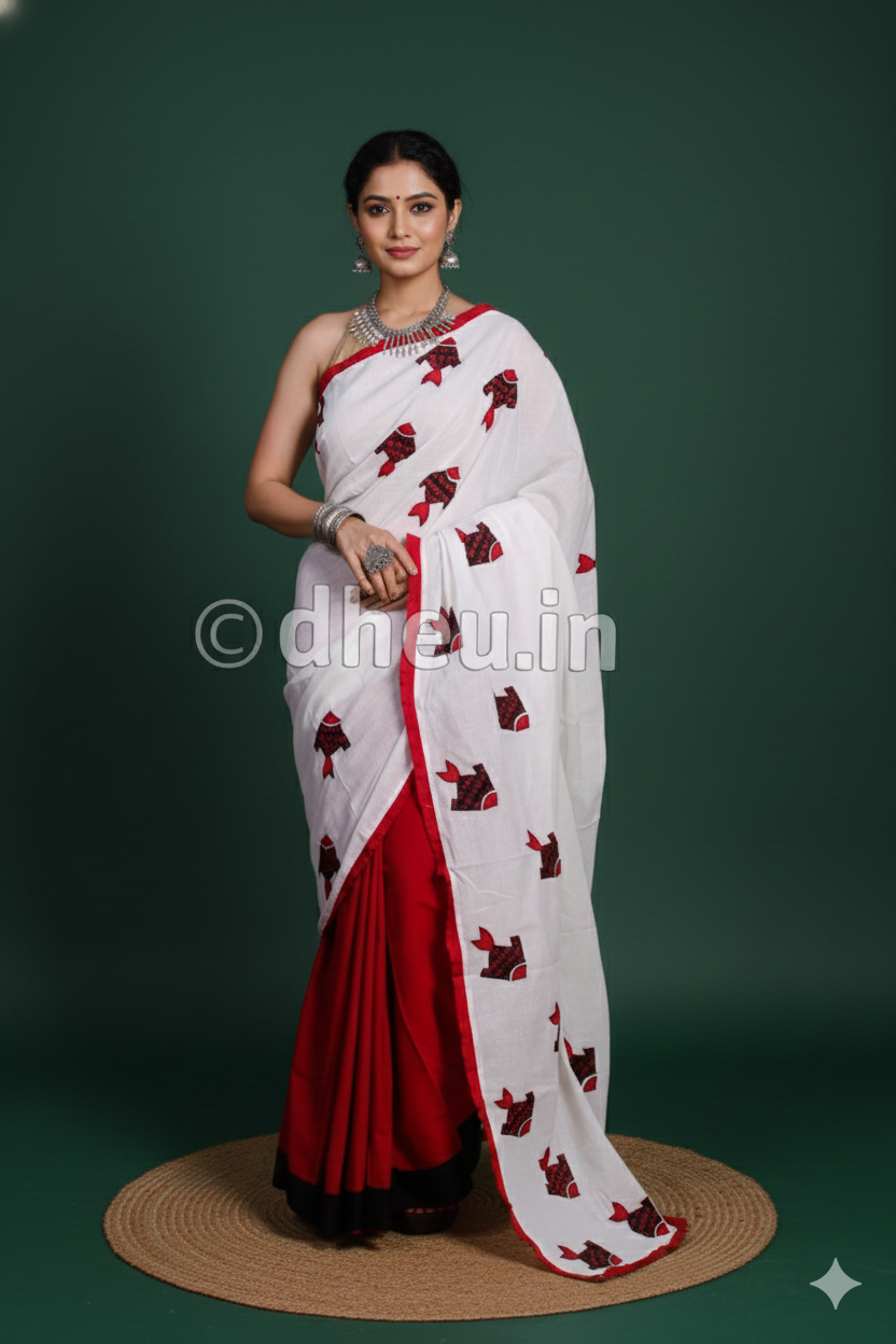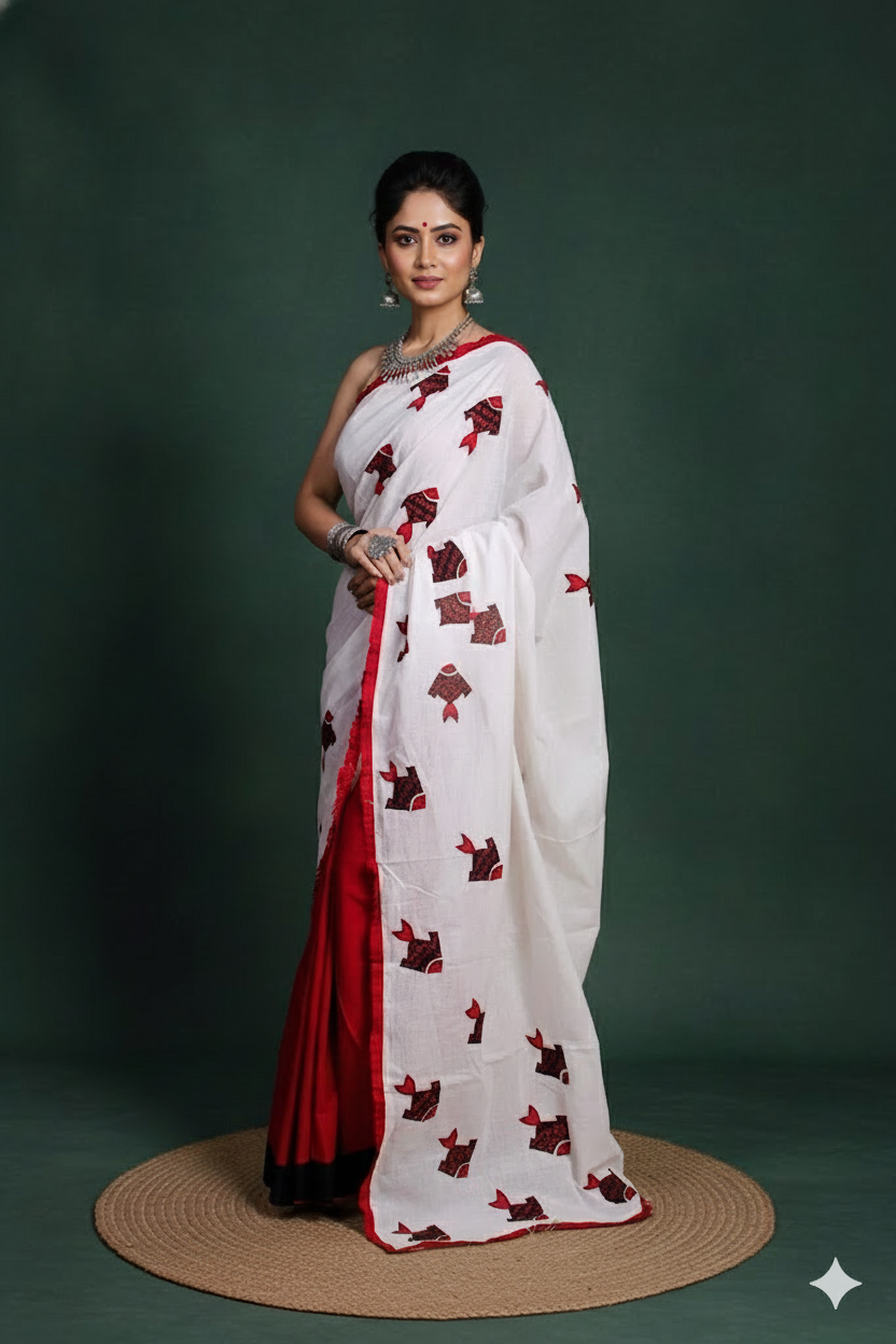 • Handloom Dheu Exclusive Applique Saree with Blouse pc