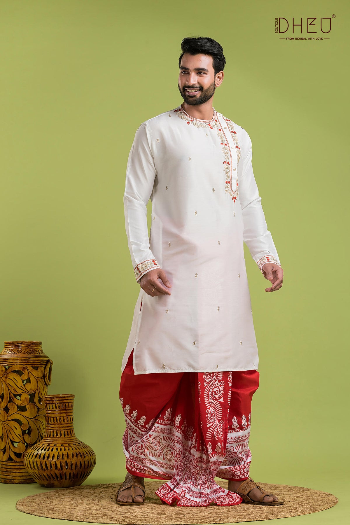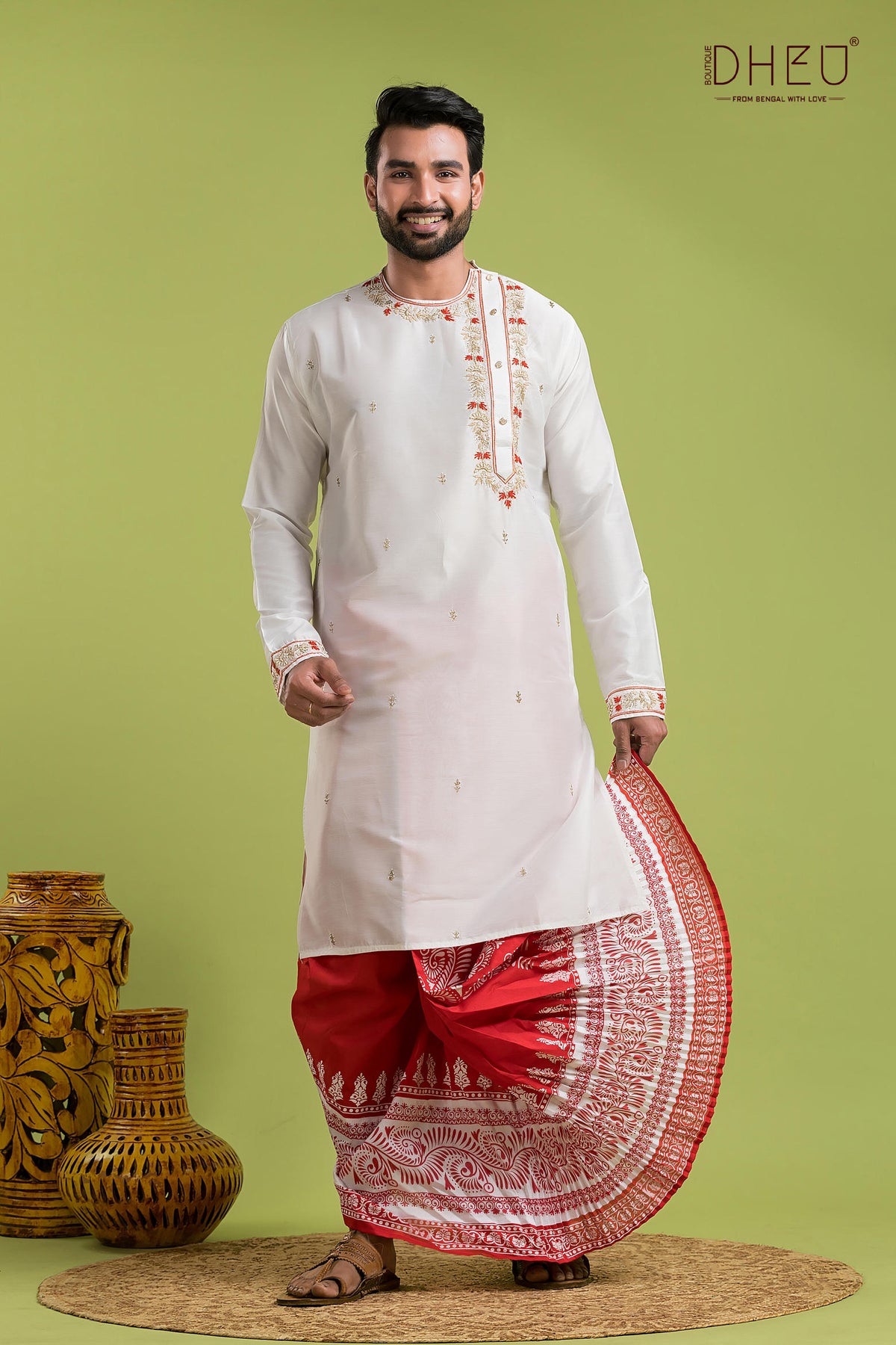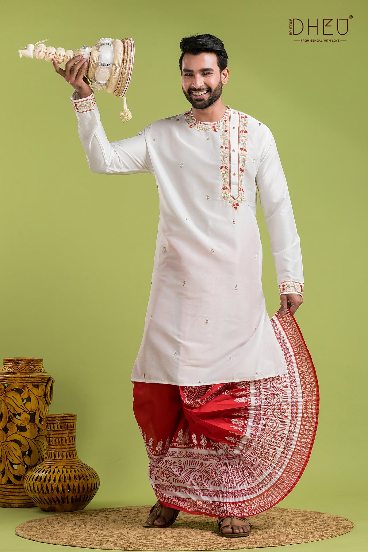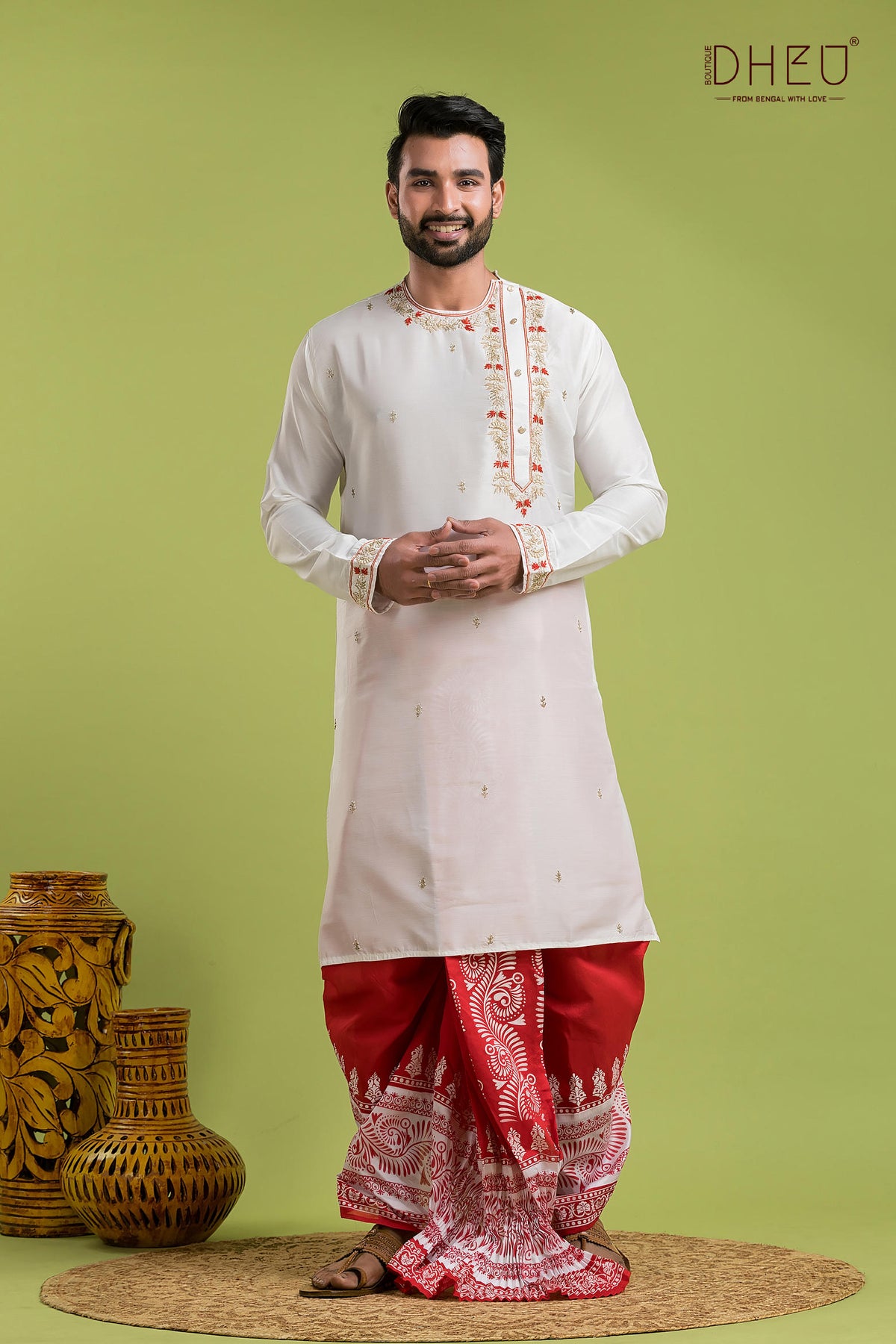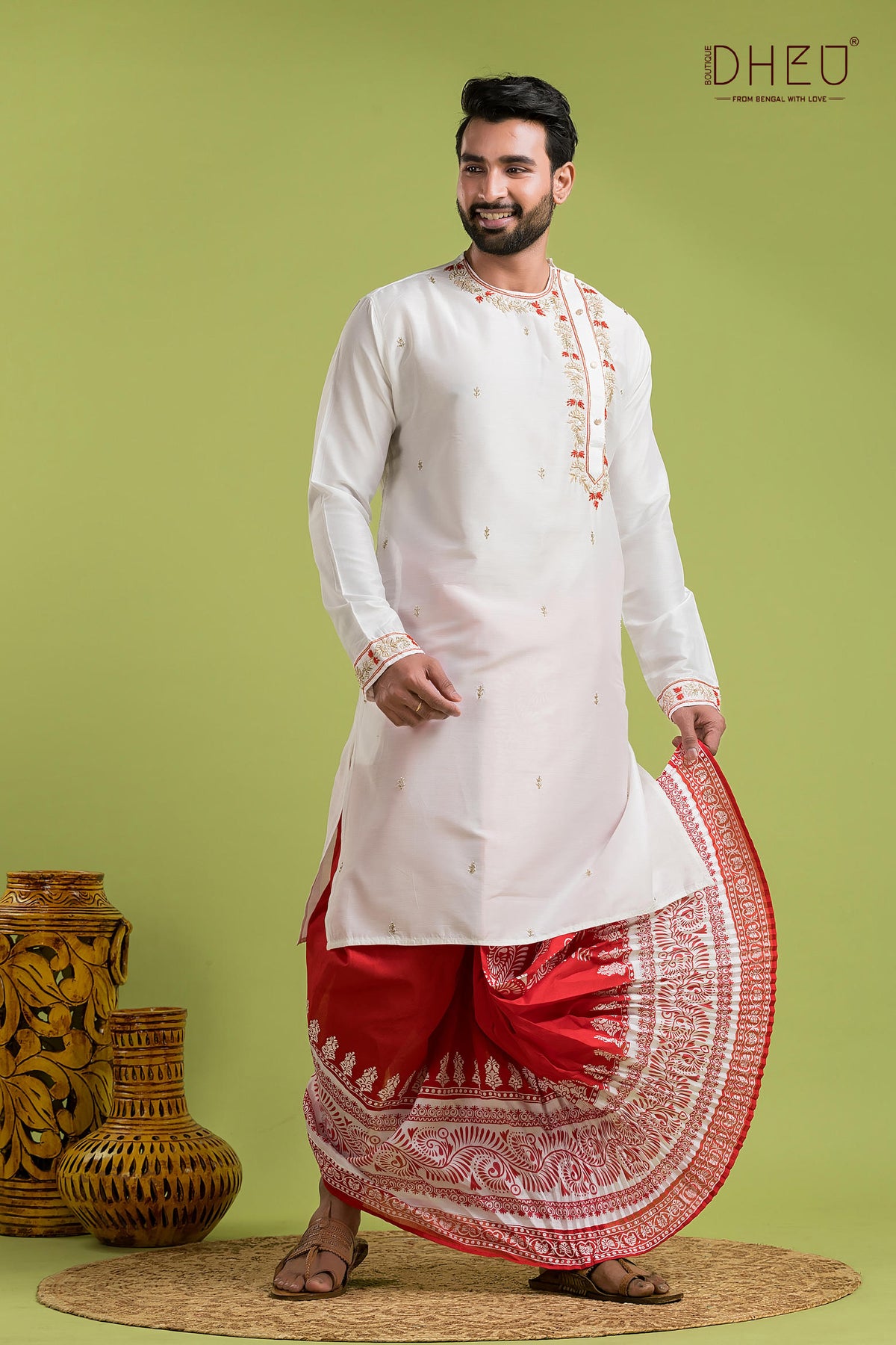 • Dheu Exclusive Designer Premium Wedding Dhoti-Kurta set