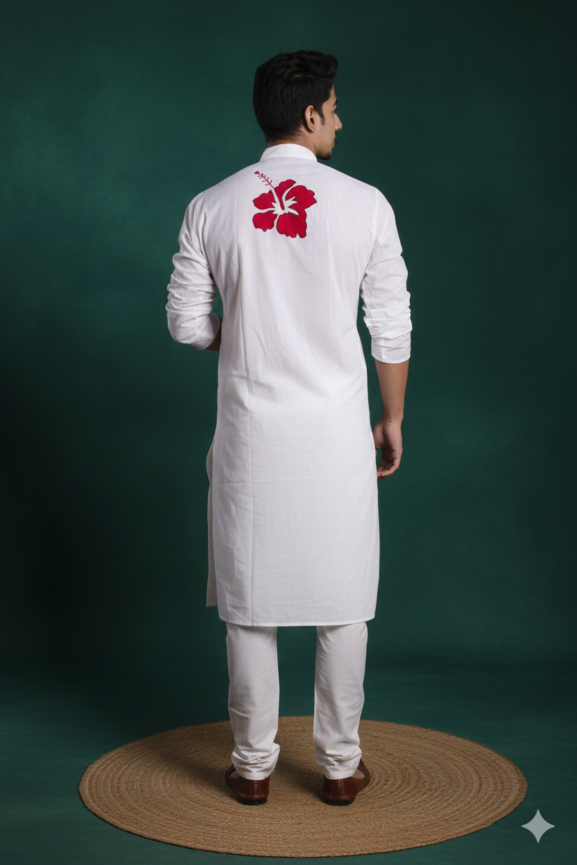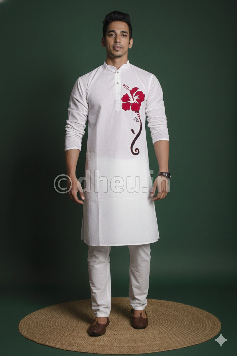 • Saree and kurta has been designed with Applique of Joba(Shoe Flower)motiffs