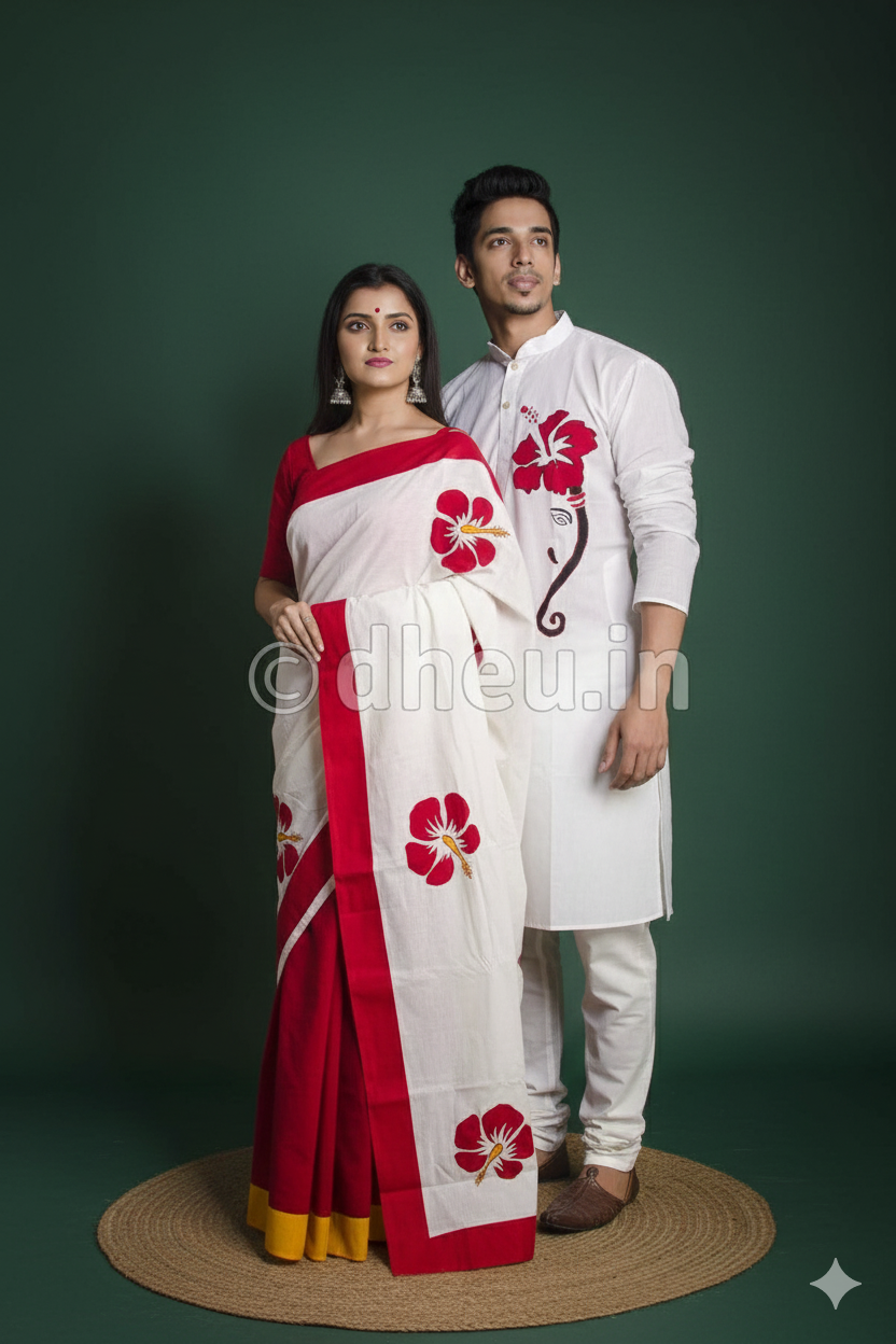 • This Product Contains 1pc saree + Blouse pc+ 1 Pc Gents' Kurta /bengali punjabi