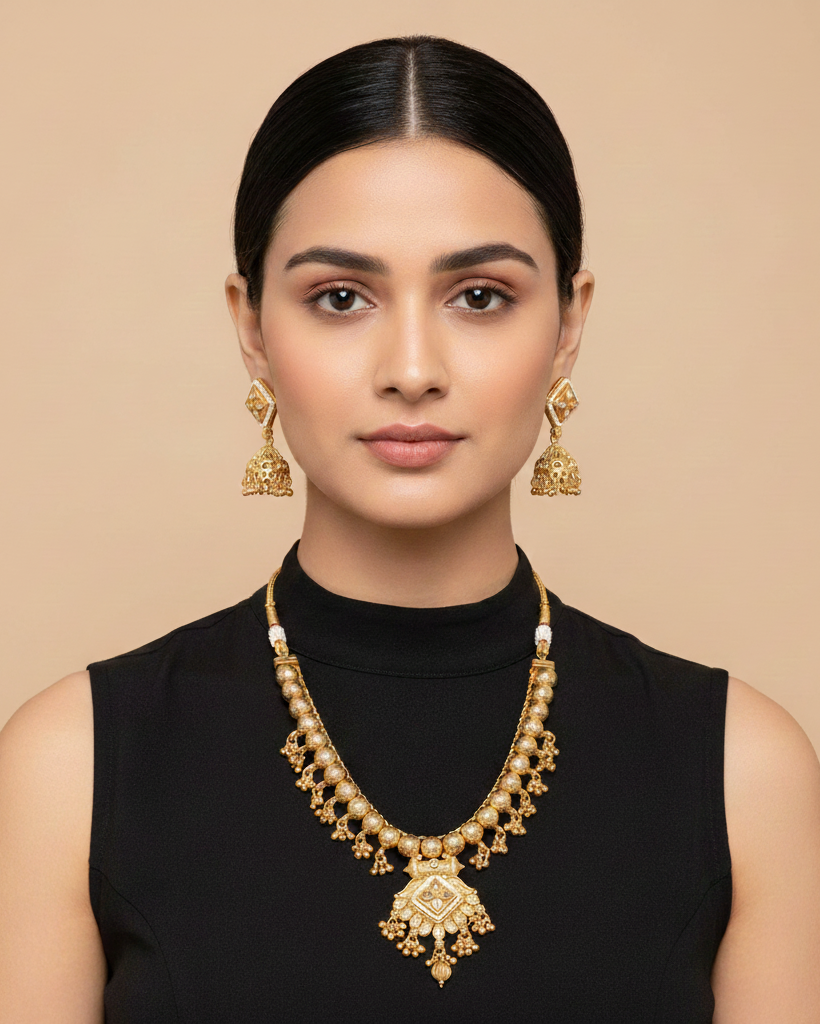 Dheu Golden Necklace & Earrings Combo