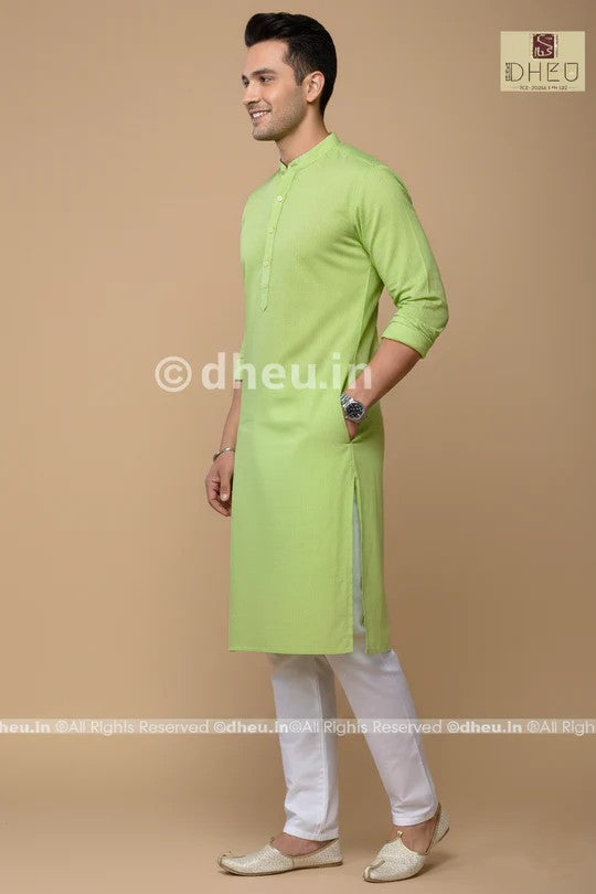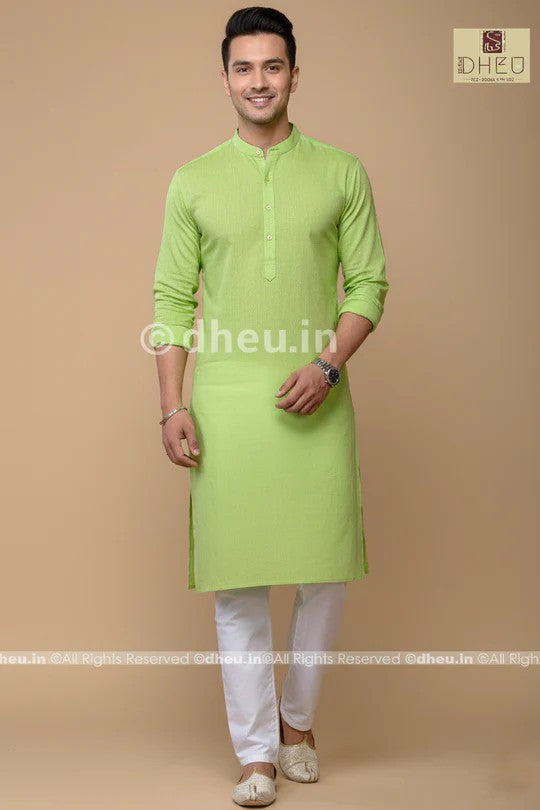 - Handwoven Fluroscent Green Cotton Kurta / bengali punjabi for Men