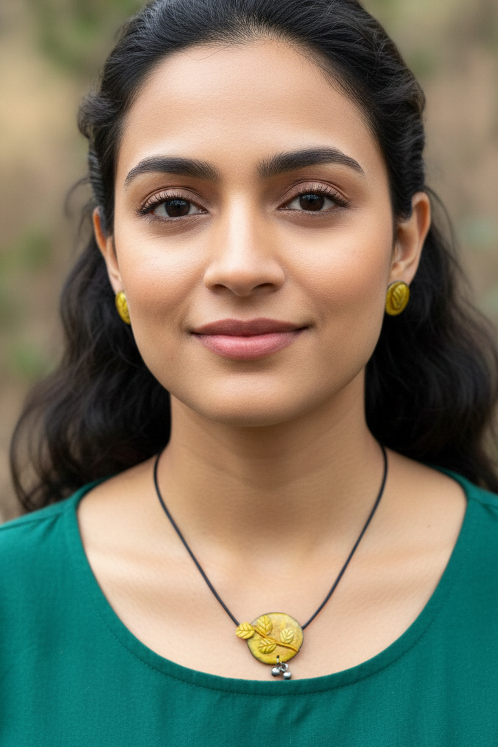 This handmade necklace features a finely crafted Maa Durga Puja Special pendant paired with matching ear studs, showcasing intricate artistry. Designed with attention to detail, it offers a unique blend of traditional symbolism and elegant style, making it an exceptional choice for those seeking authentic and meaningful jewelry. Perfect to complement ethnic attire or as a distinctive statement piece.