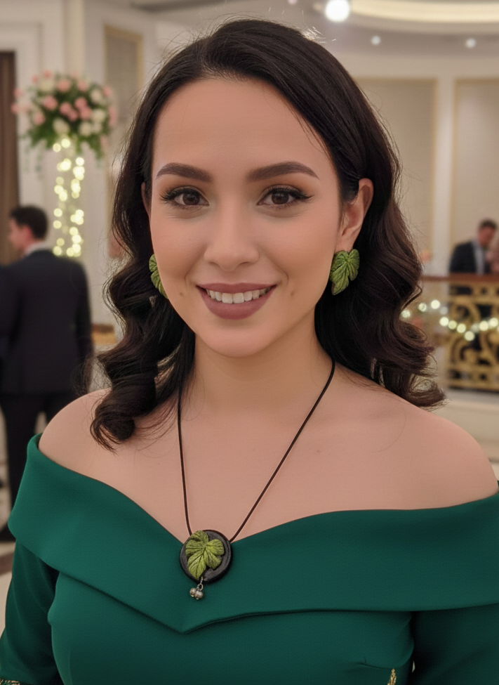 This handmade necklace features a finely crafted Maa Durga Puja Special pendant paired with matching ear studs, showcasing intricate artistry. Designed with attention to detail, it offers a unique blend of traditional symbolism and elegant style, making it an exceptional choice for those seeking authentic and meaningful jewelry. Perfect to complement ethnic attire or as a distinctive statement piece.