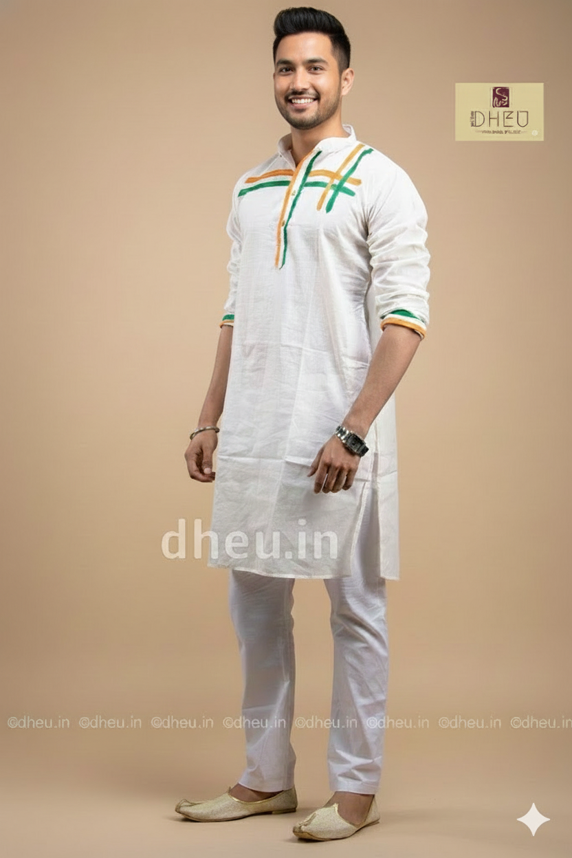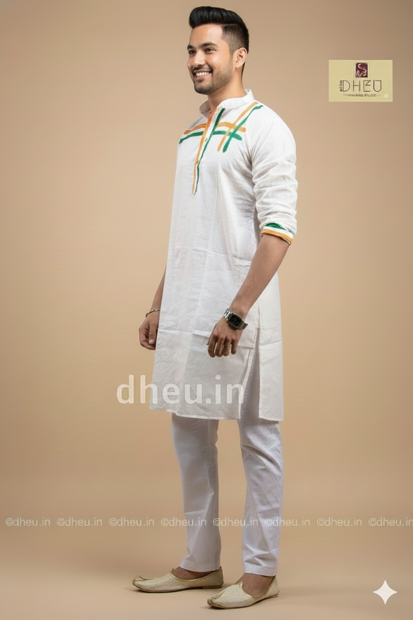 - Ethnic Full Sleeves Kurta with Chinese Collar with Tricolour Borders