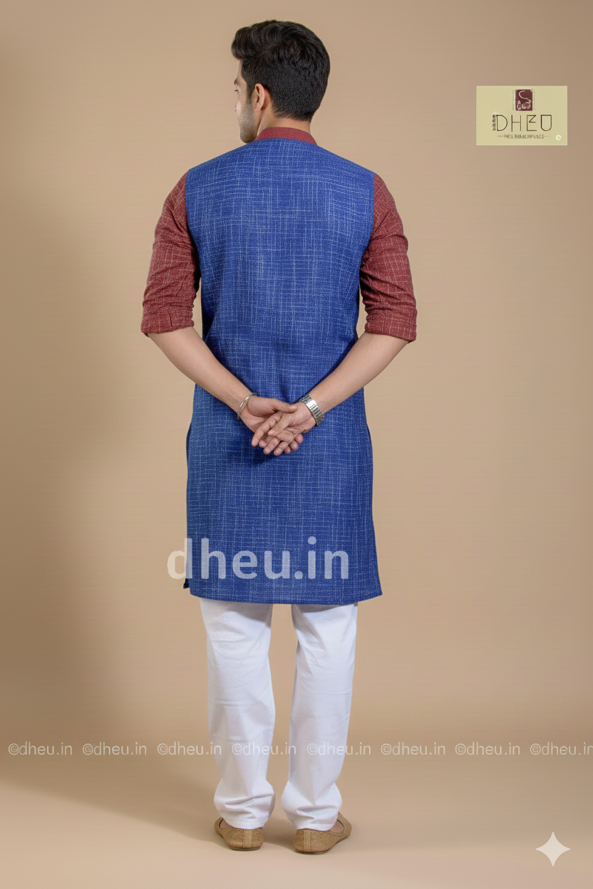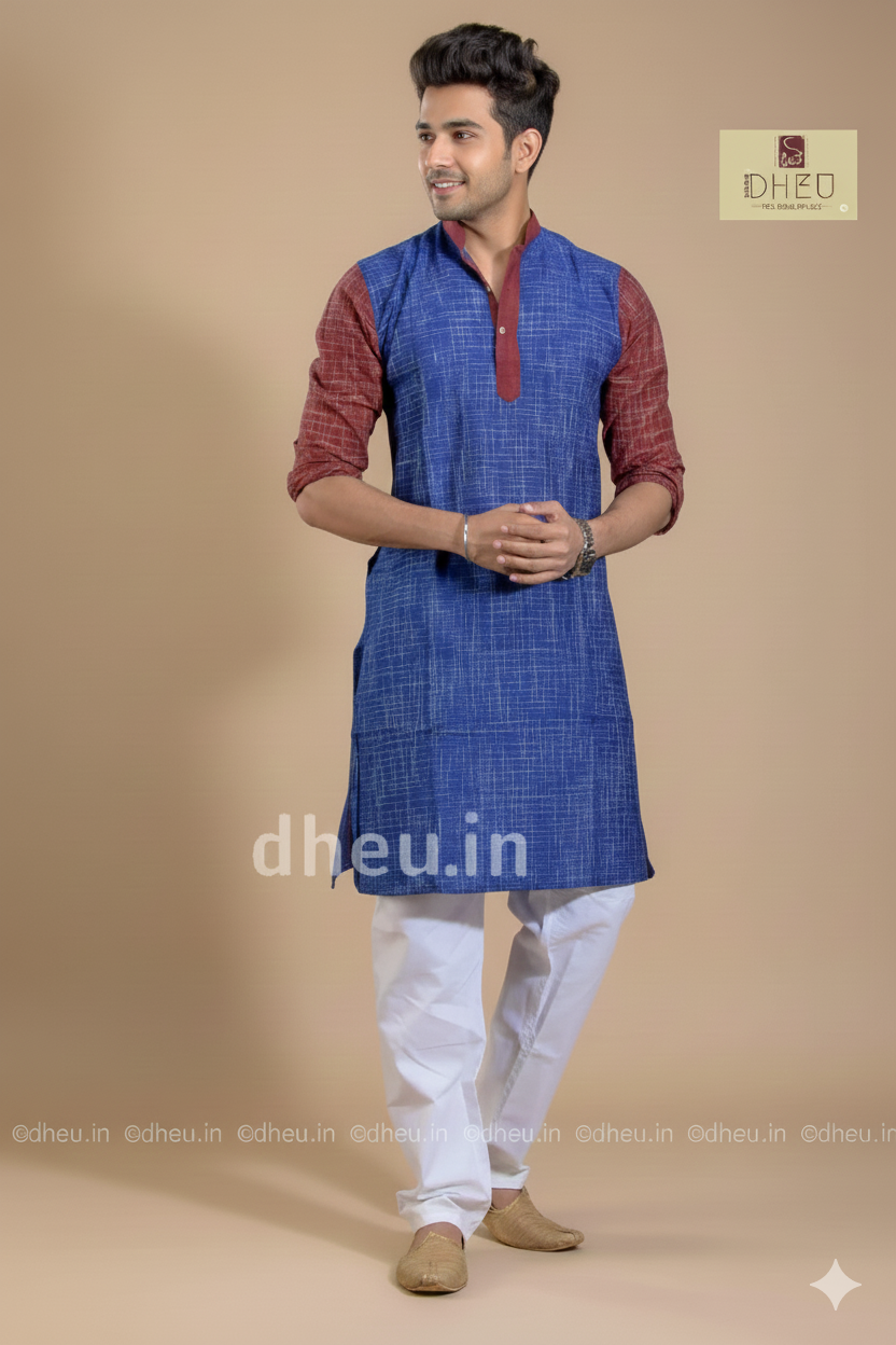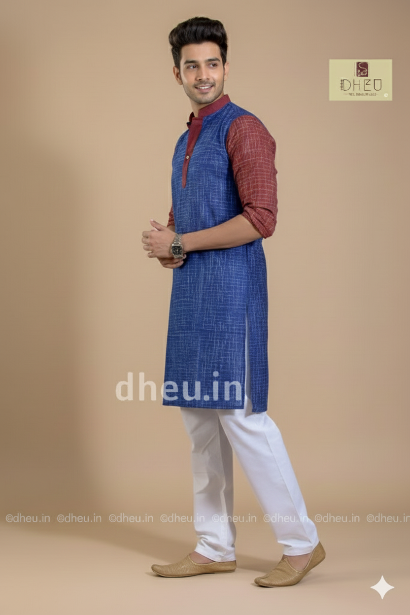 - Colour of the Kurta Blue with Maroon Collar and Hand Portion Maroon Colour