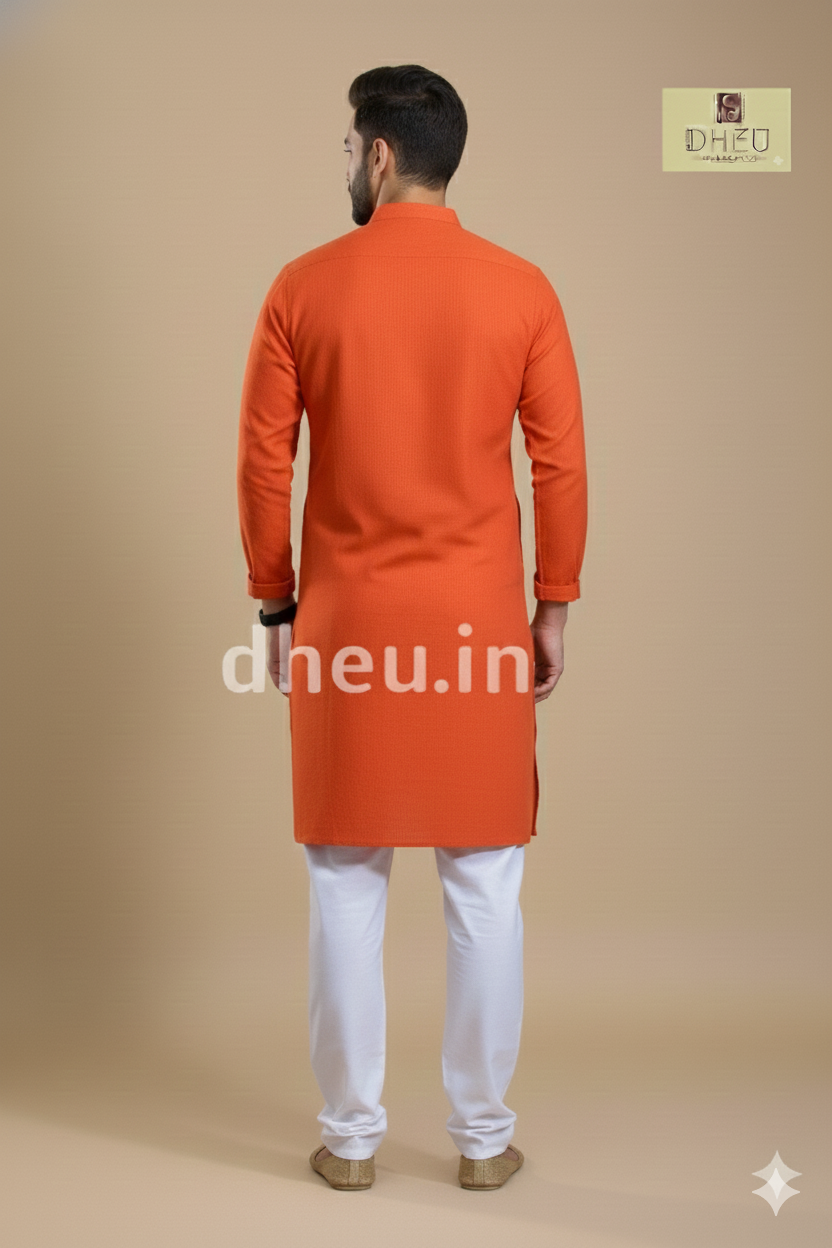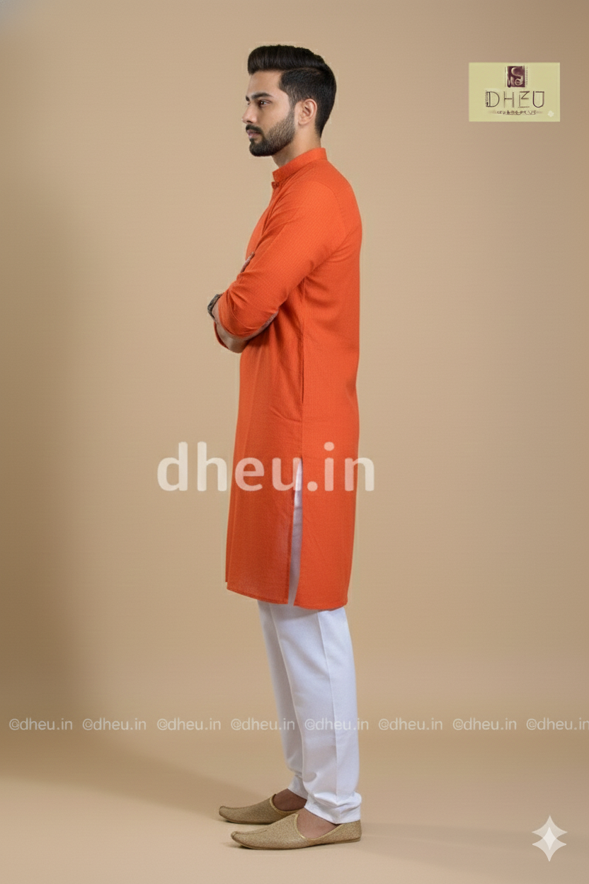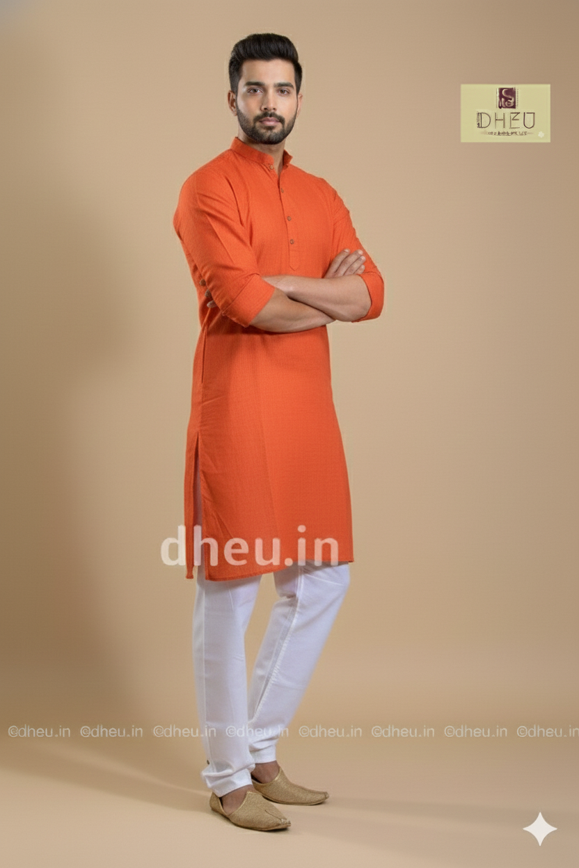 Orange Pure Cotton kurta for men