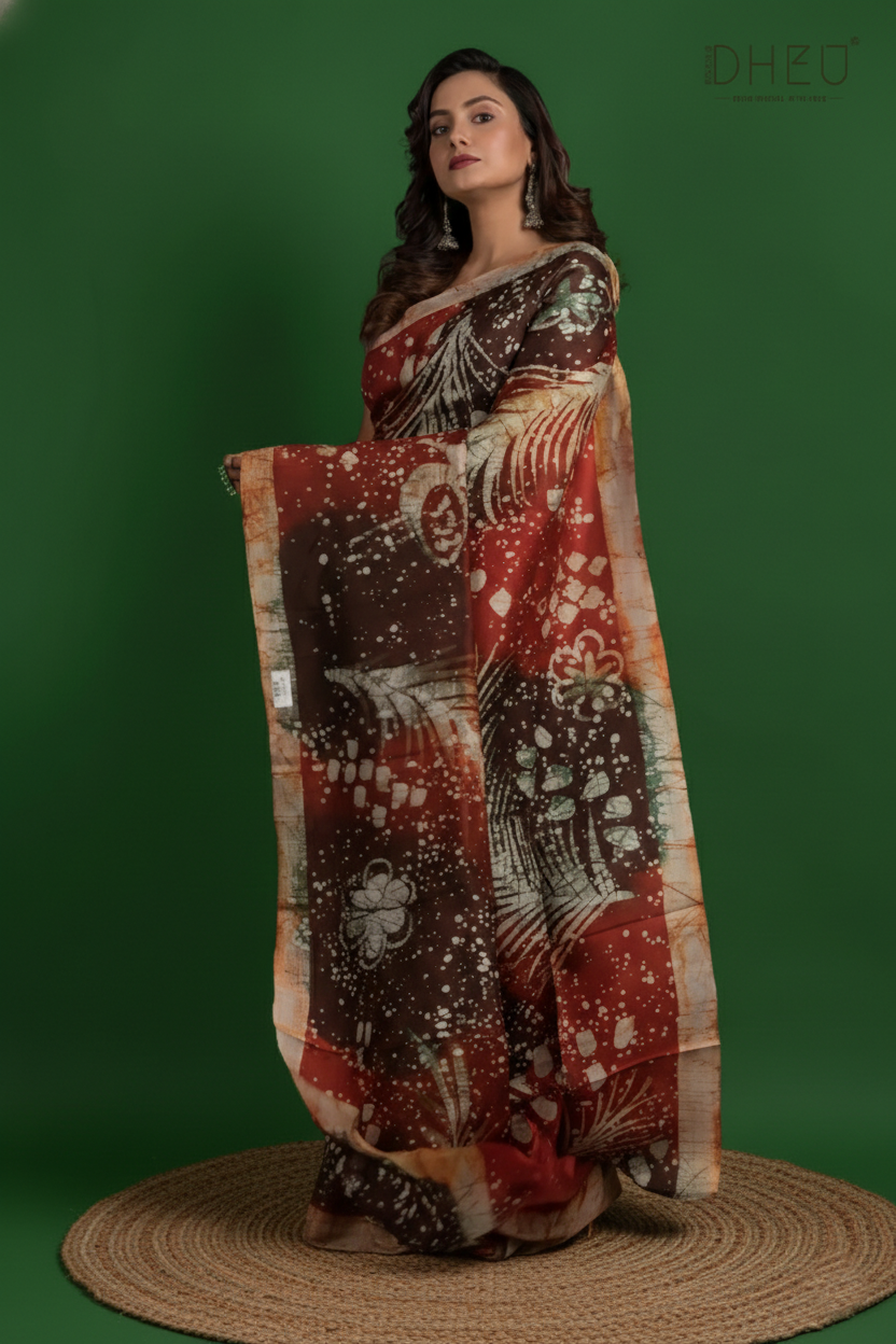 Bishnupuri Silk Batik Saree (Silk Mark Certified) - Dheu