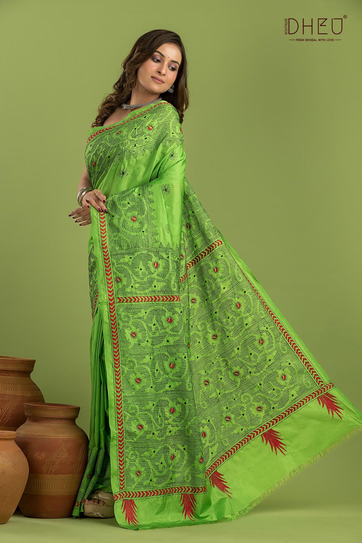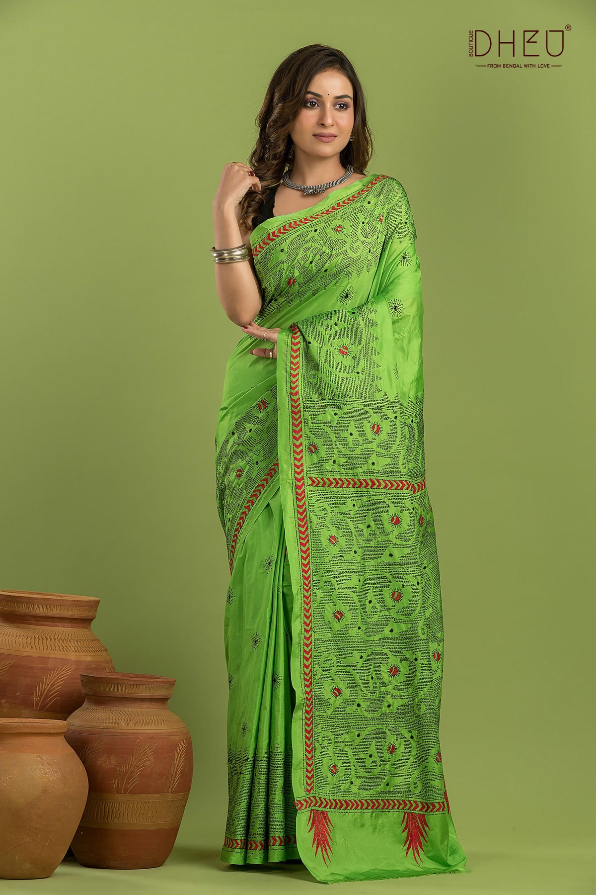 Bangalore Silk Kantha Stitch Saree