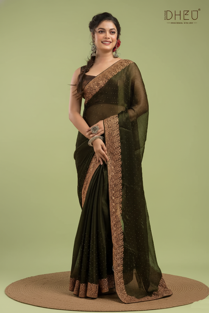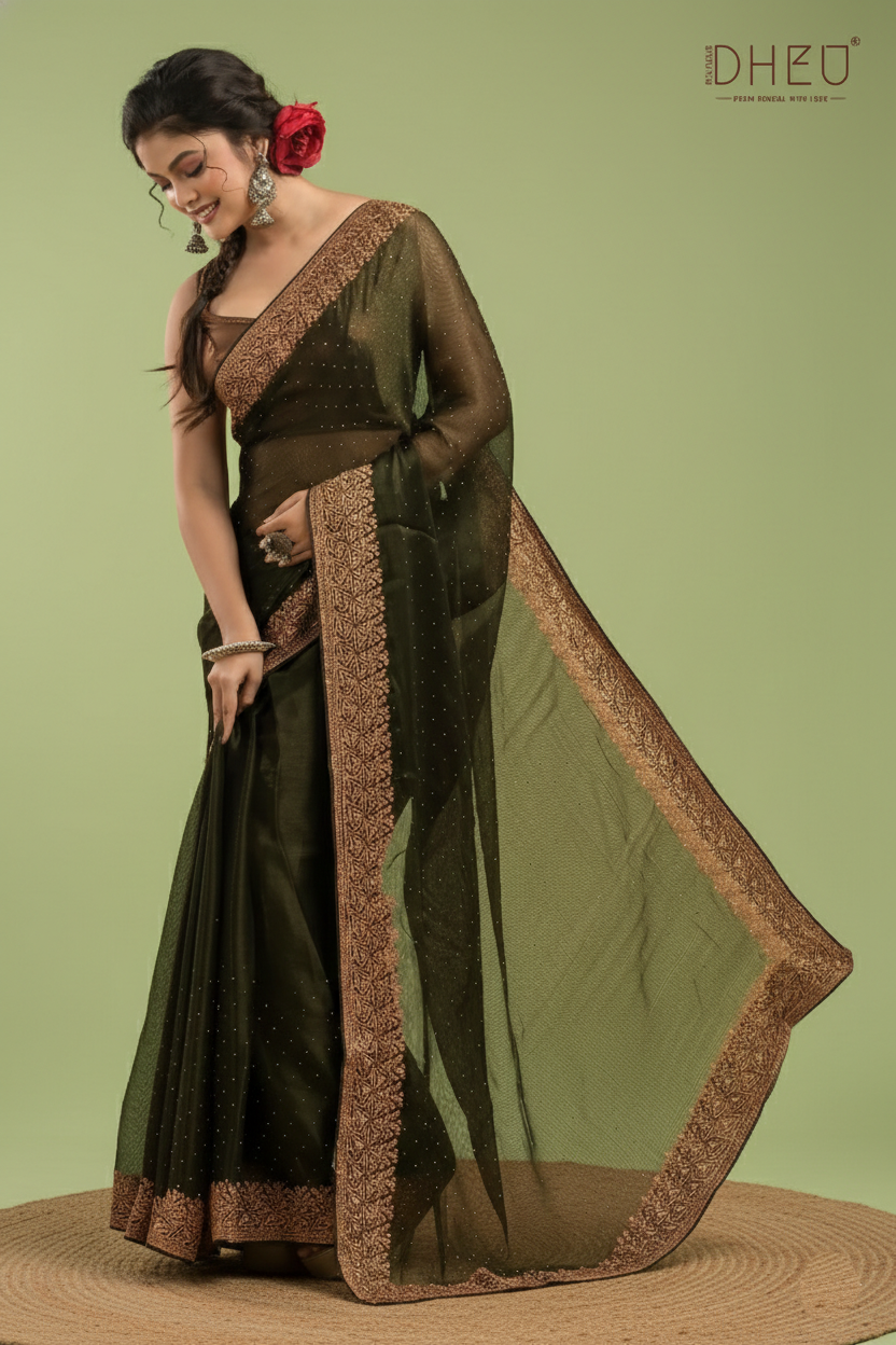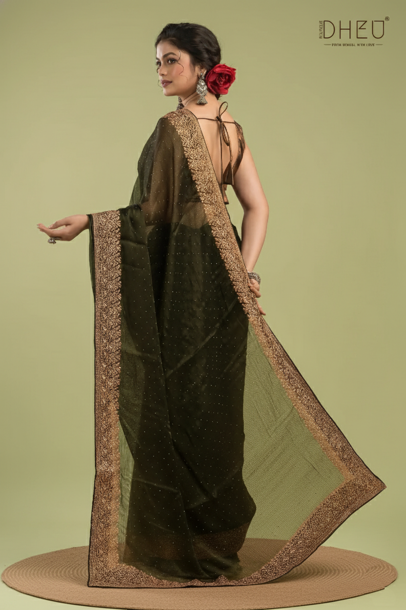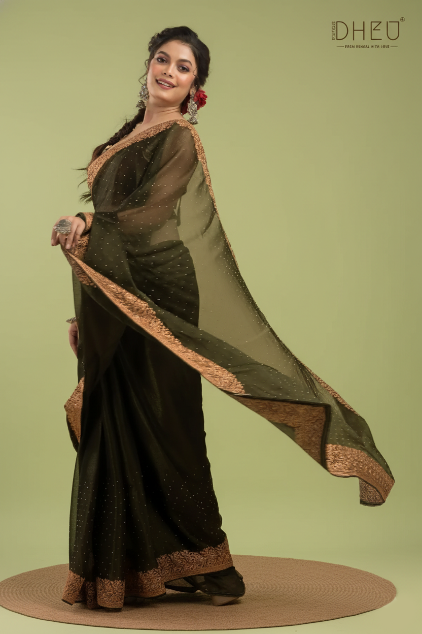 Designer Embroidery Chiffon Silk Saree - Dheu