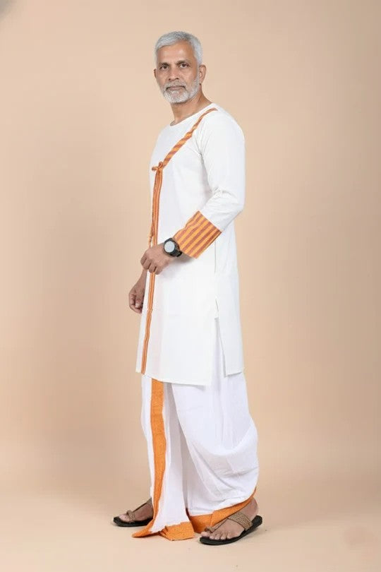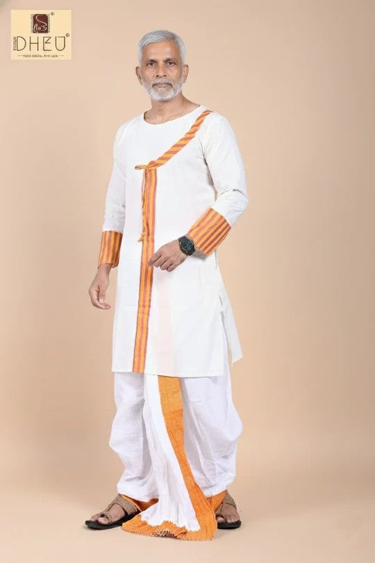 • Dhoti-  White with Yellow Border Ready to Wear Dhoti