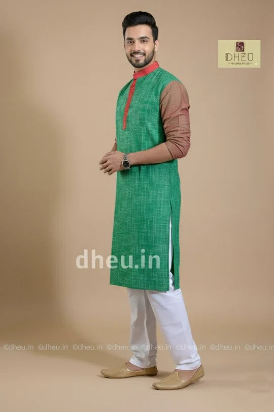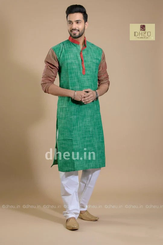 • Colour of the Kurta Green with Orange Collar and Hand Portion Orange Colour