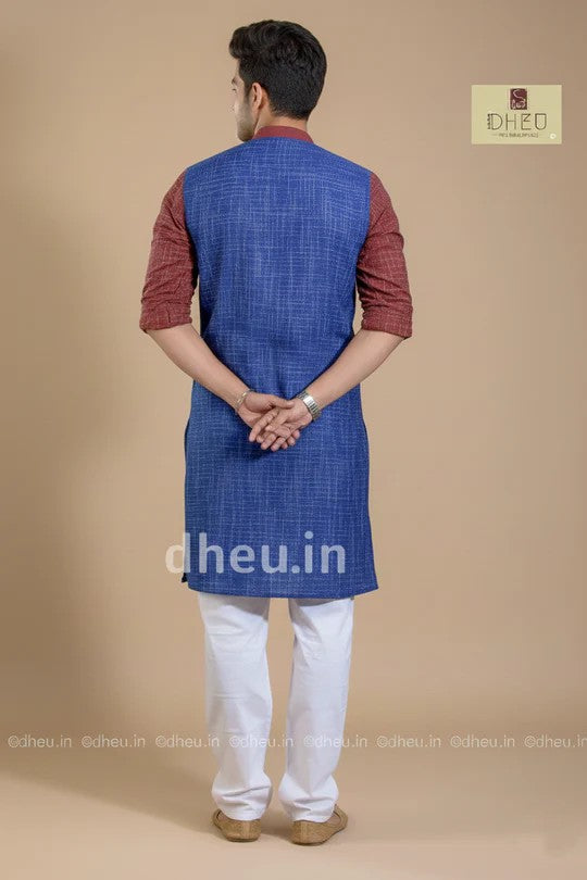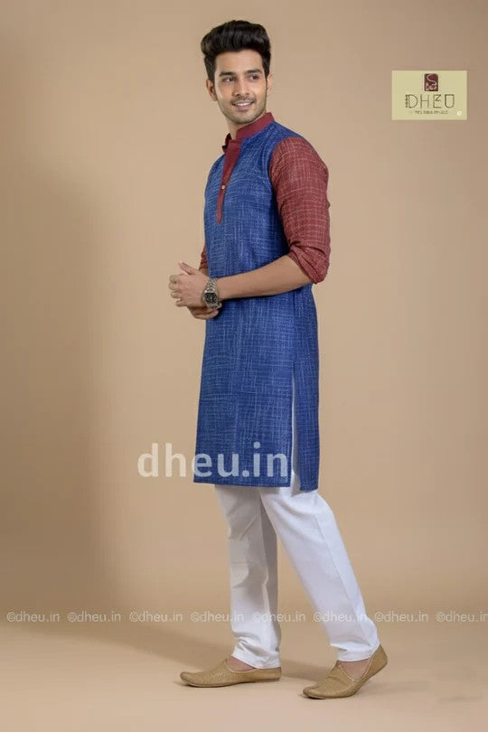 - Colour of the Kurta Blue with Maroon Collar and Hand Portion Maroon Colour
