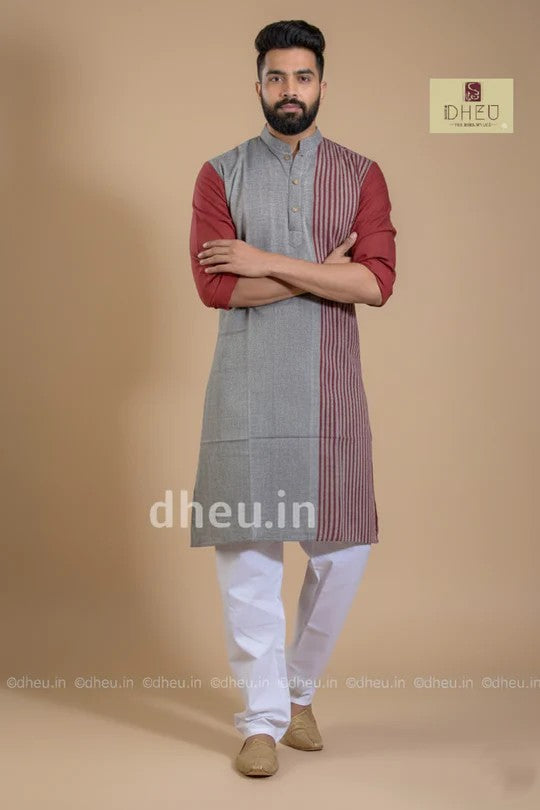 - Handwoven Blue Stripe Cotton Kurta for Men