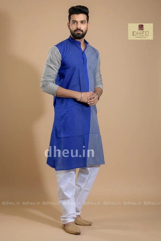 - Handwoven Blue Stripe Cotton Kurta for Men