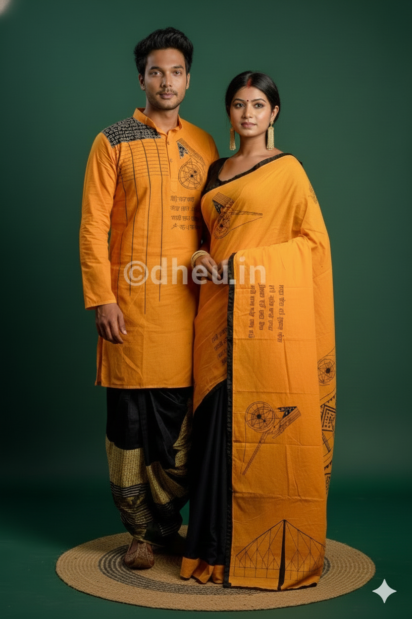 Kolkata Couple Set-Saree-kurta - Boutique Dheu