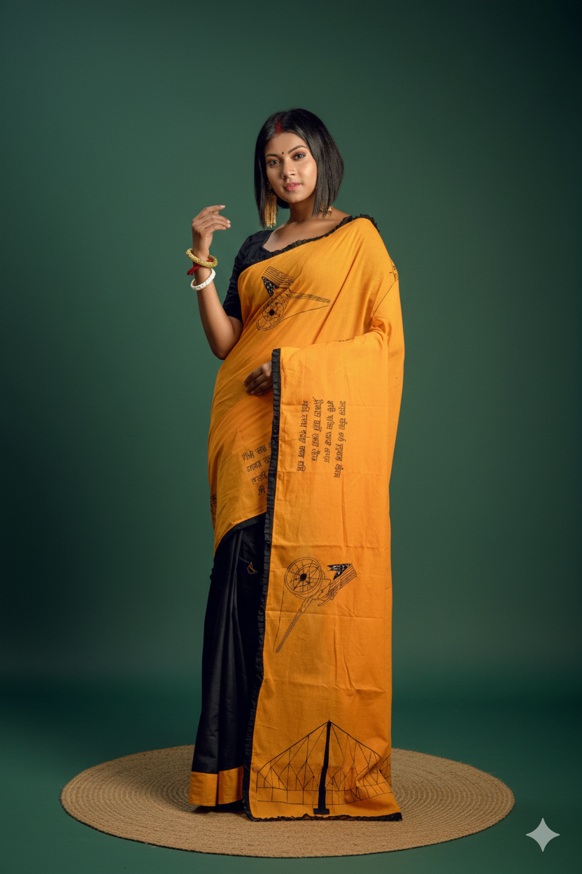 • This Product Contains 1pc saree + Blouse pc+ 1 Pc Gents' Kurta- Dhuti is not included