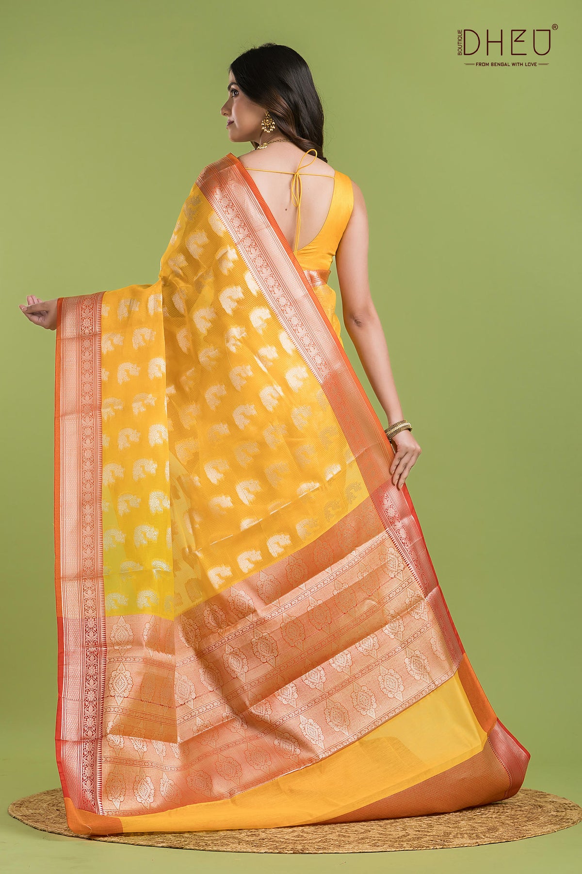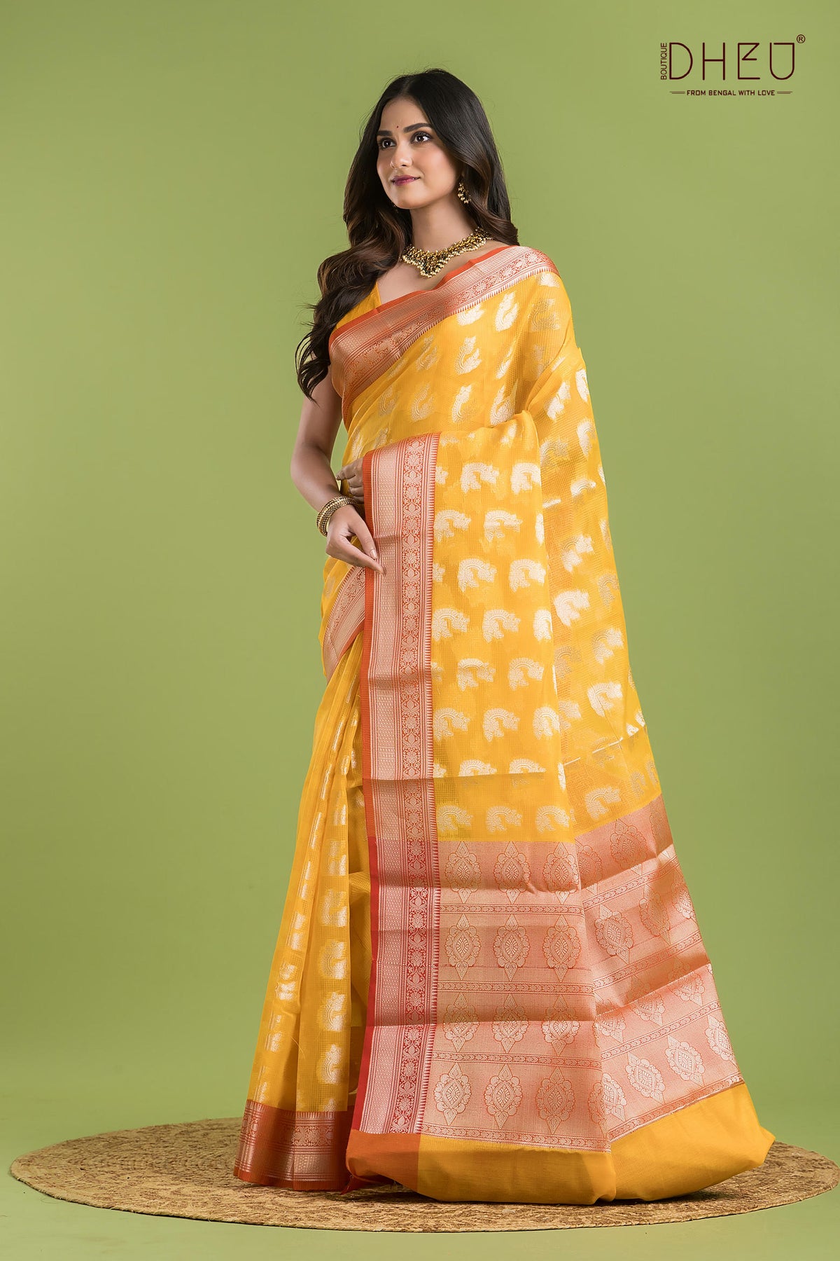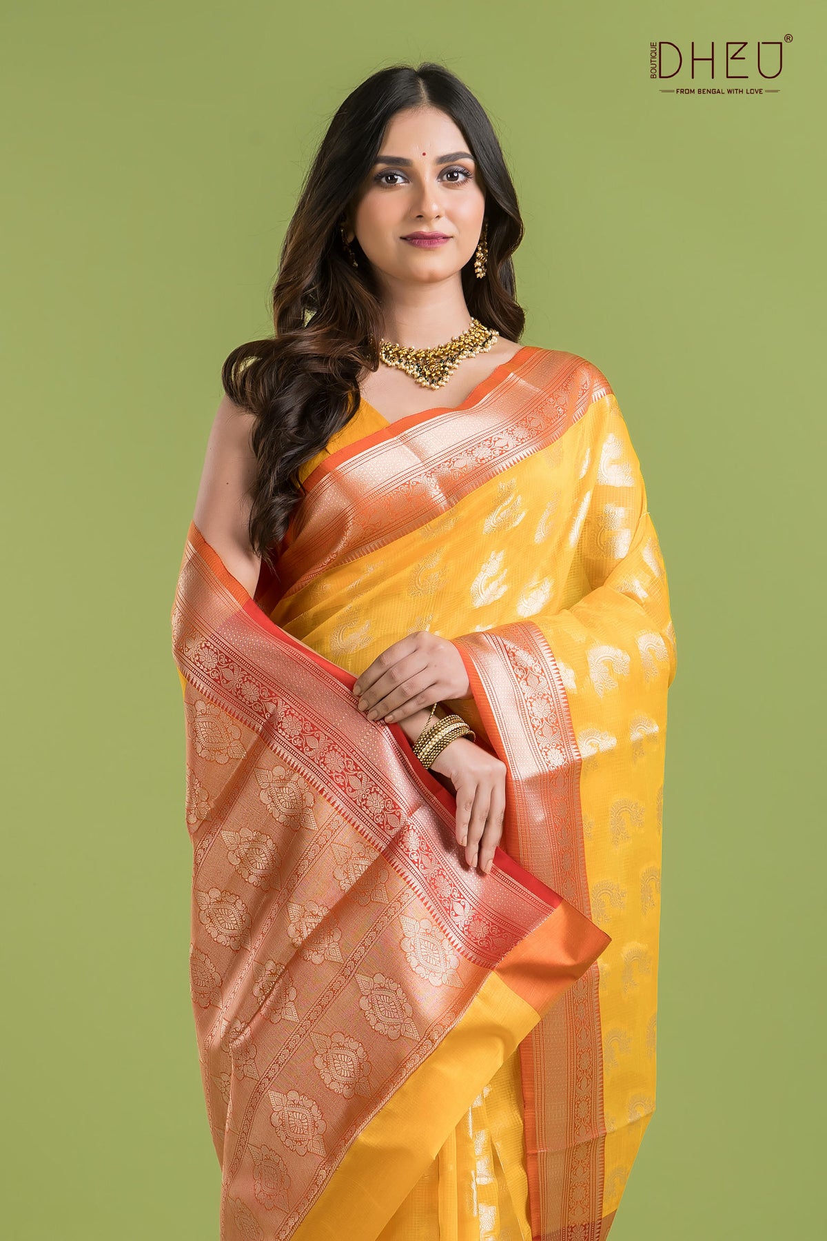 Our Handloom Maheshwari Silk Saree is a testament to 18th-century royal elegance. The lightweight, breathable nature of the fabric makes it the perfect "all-day" saree these sarees are celebrated for their unique Silk-Cotton blend, offering the luxurious sheen of silk with the airy comfort of cotton.
