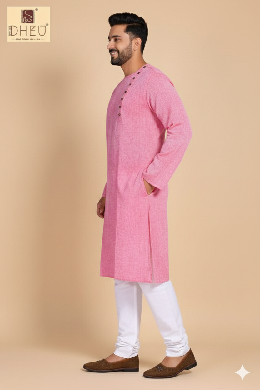 • Handwoven  Pink Colour pure cotton Kurta for Men