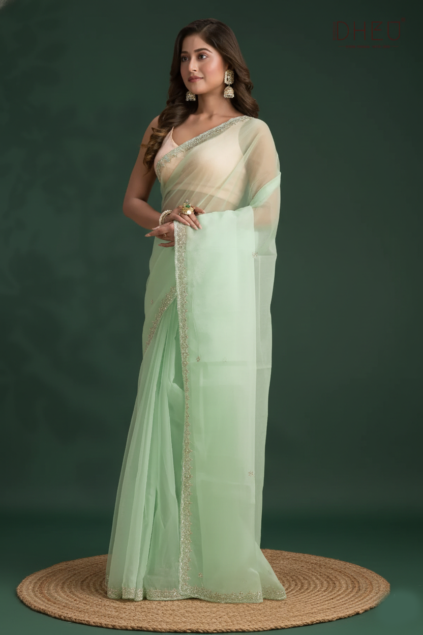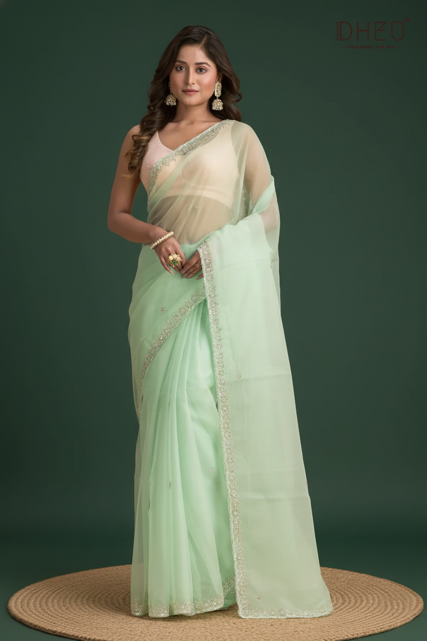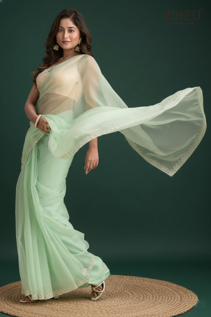 • Dheu Exclusive Chiffon Saree with Blouse pc