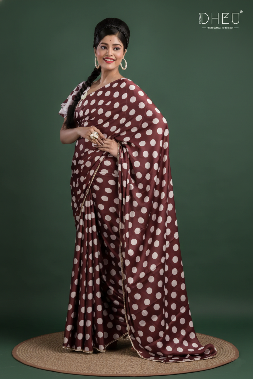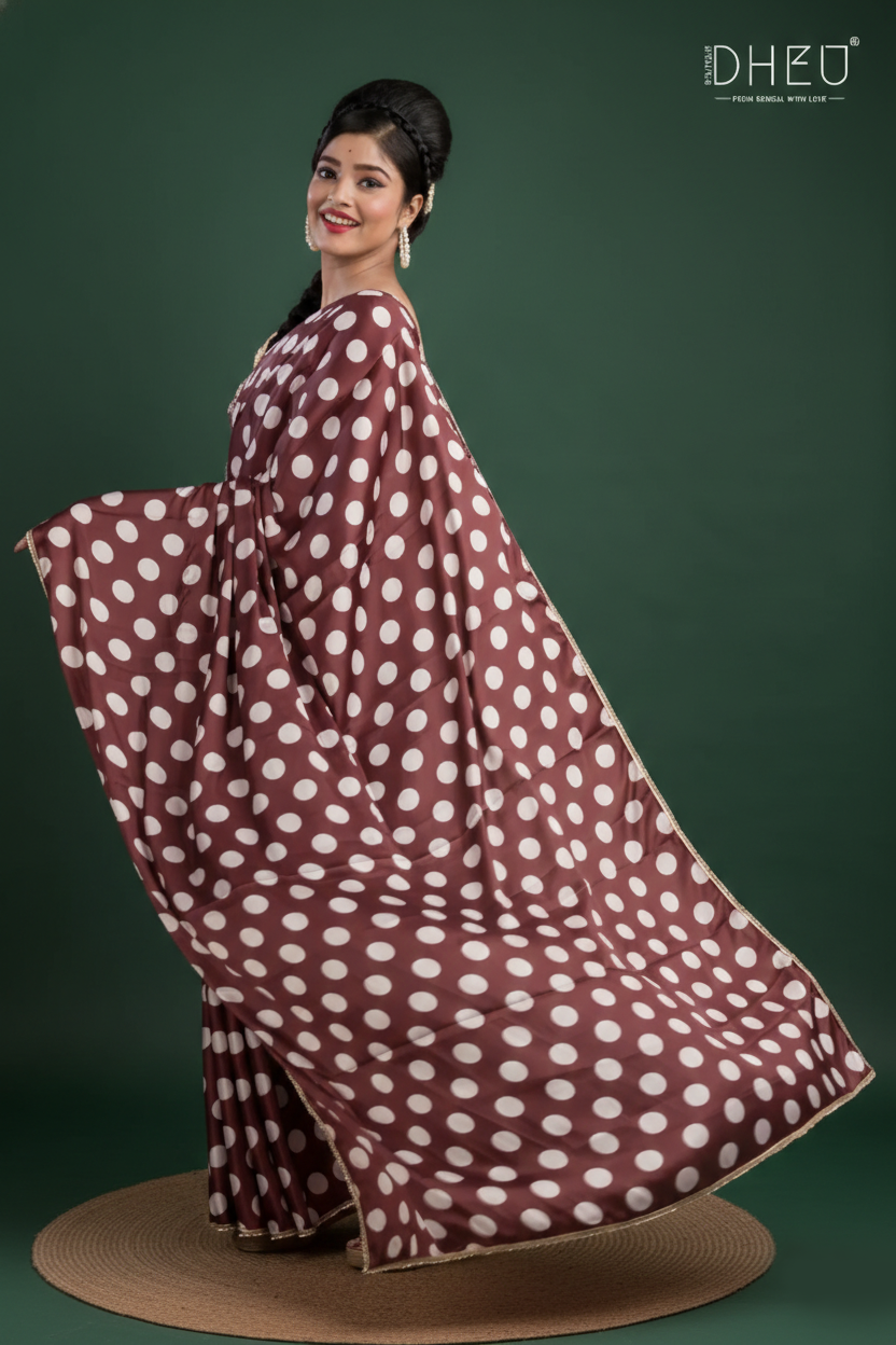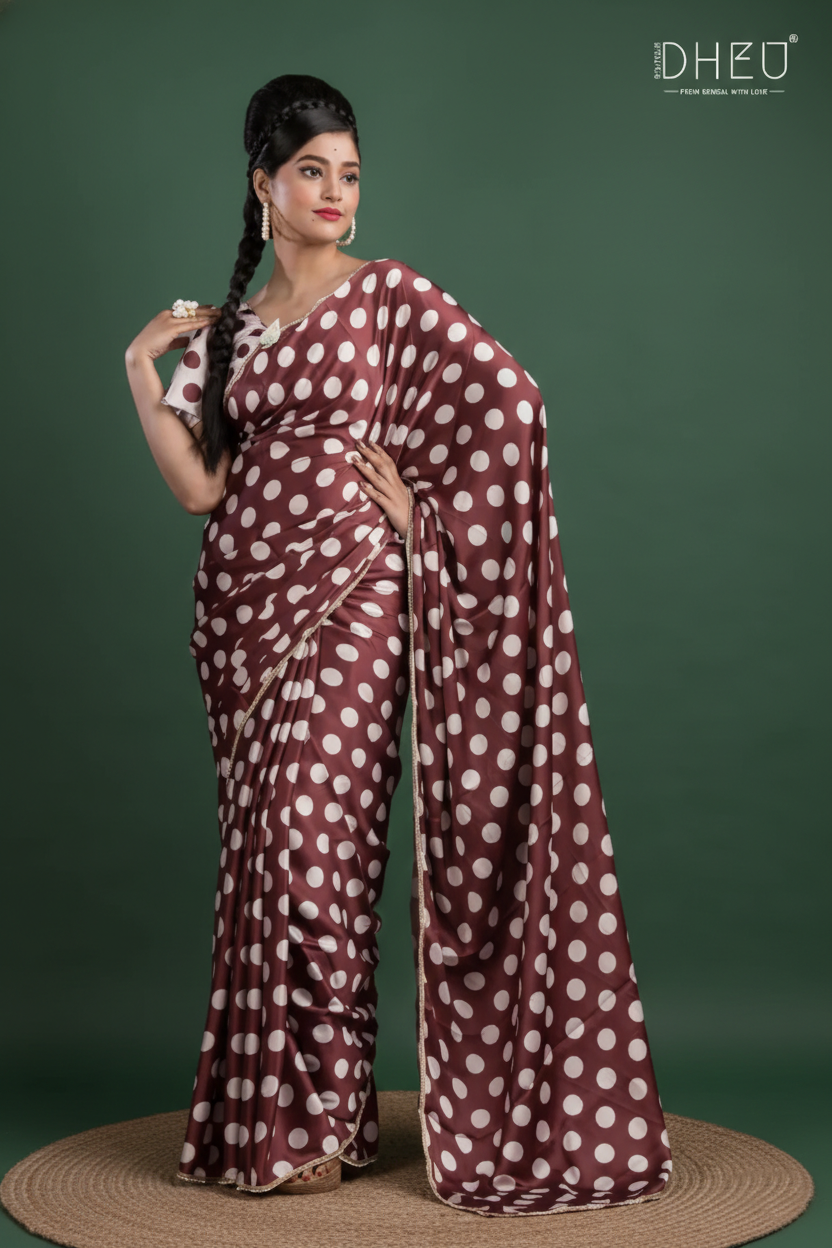 Introducing the Dheu Exclusive Printed Satin Saree! Elevate your collection with its stunning prints and high-quality cotton fabric. Versatile and affordable, it's perfect for any occasion. Step out in style with this unique and comfortable saree, available for worldwide shipping and COD options at Dheu.in. Shop now and add some allure to your wardrobe!