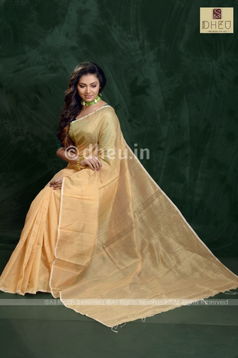 Beige Handloom Silk Cotton Zaripar