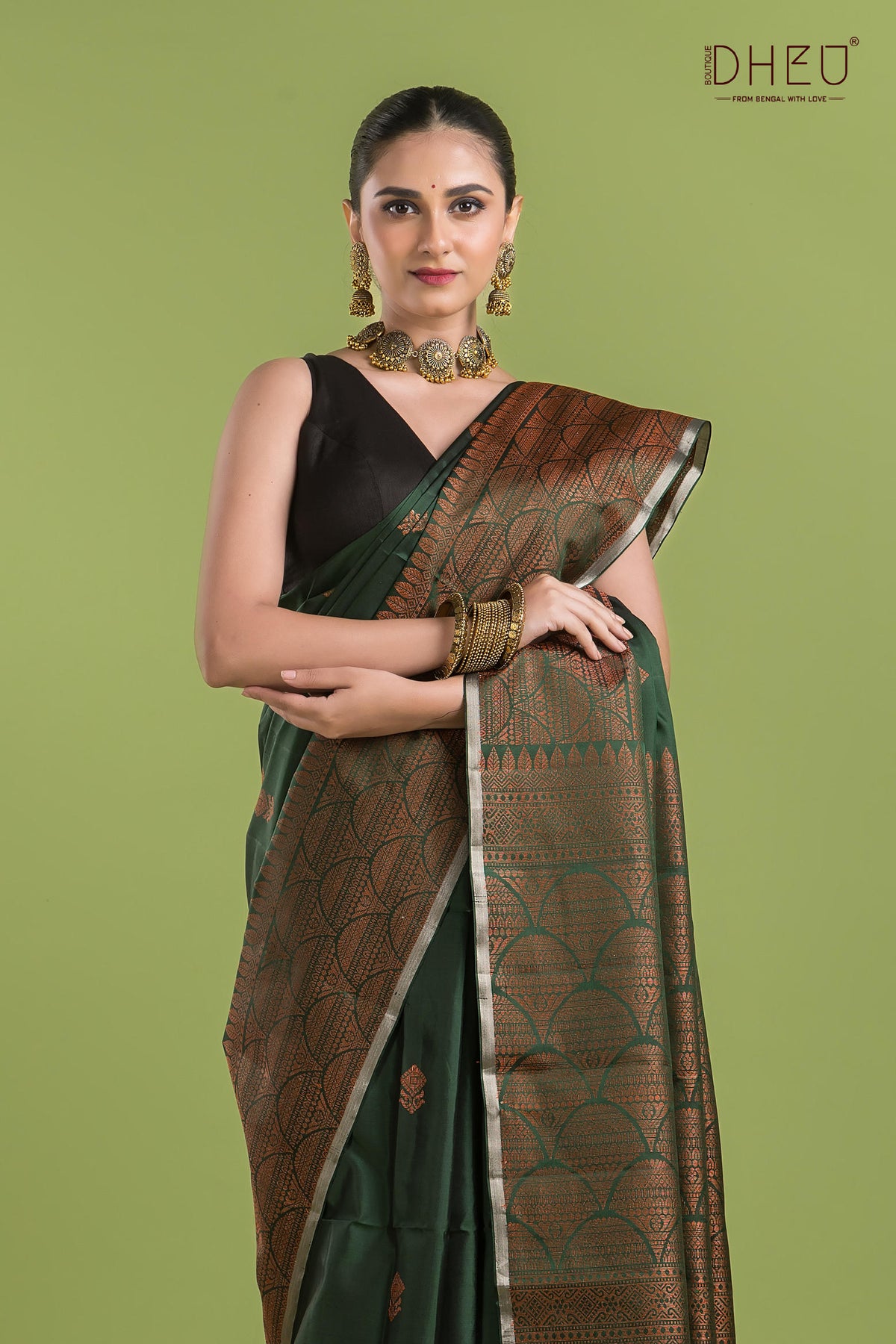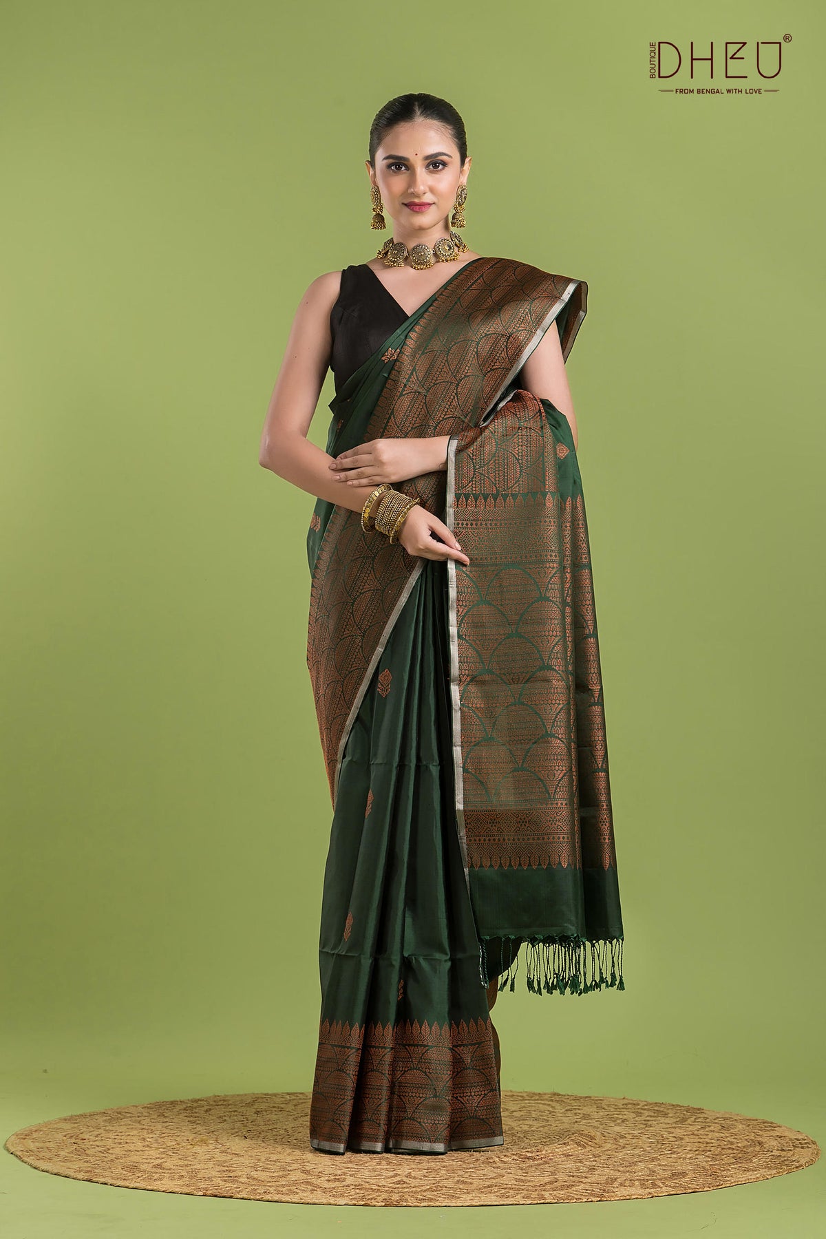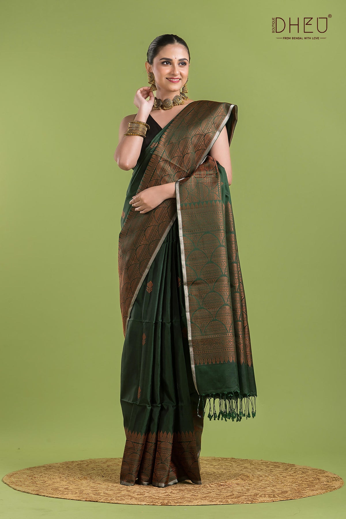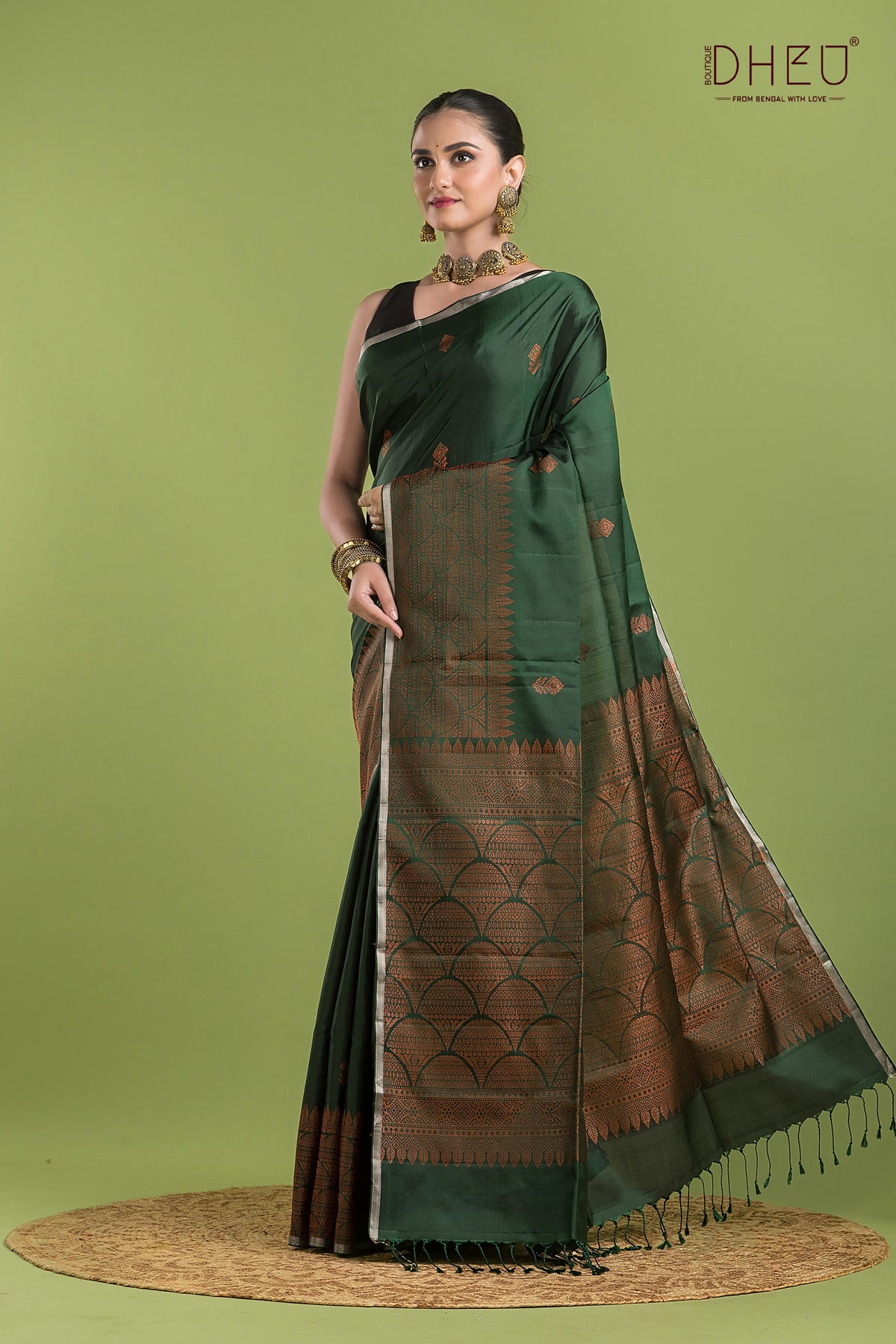 • Saree Color :- Dark Green With Copper