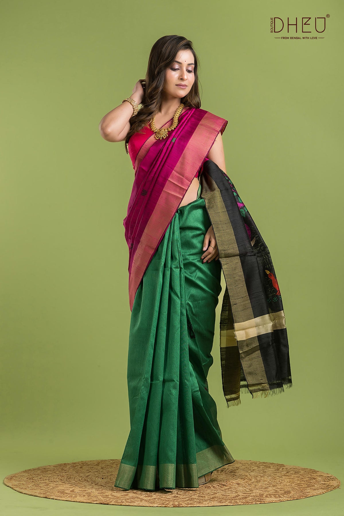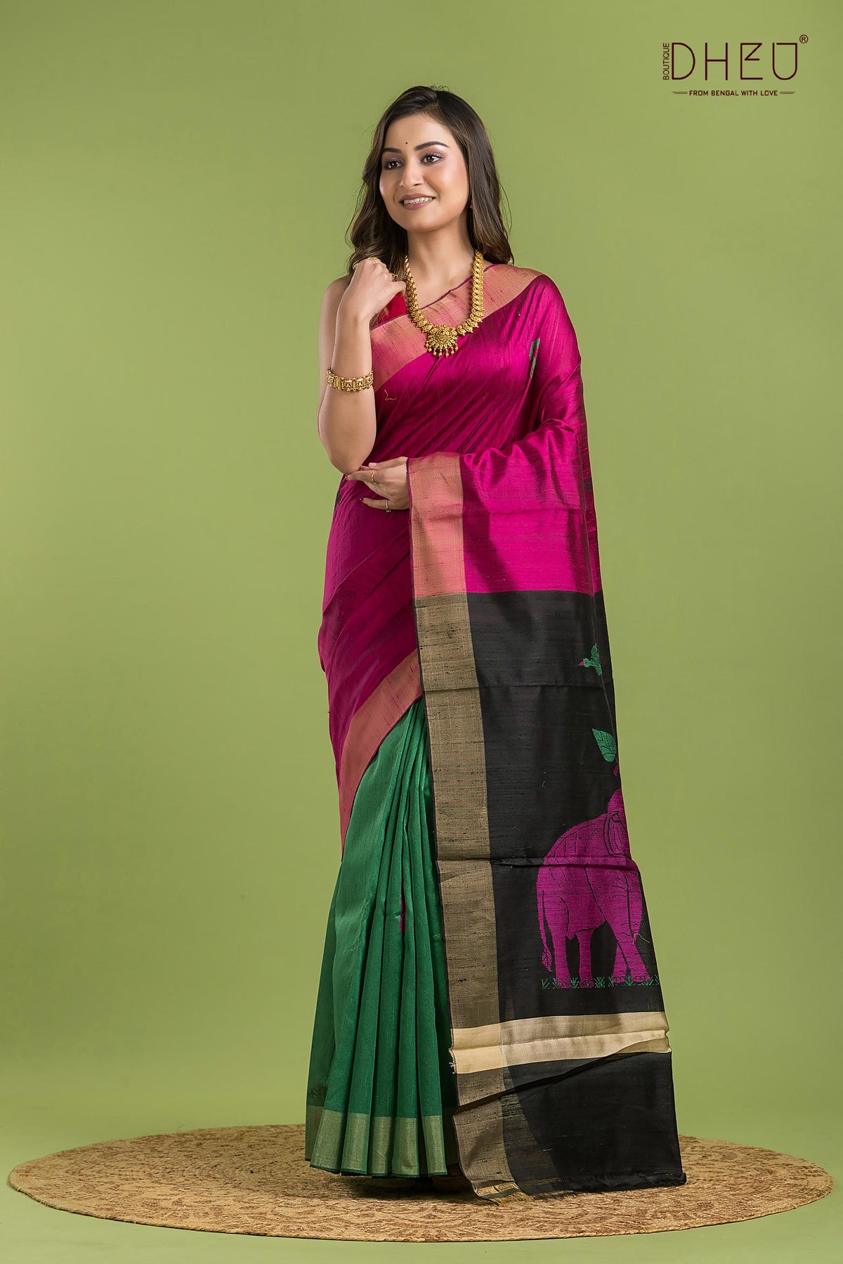 Embrace the beauty of "perfect imperfection" with our Pure Raw Silk Saree collection. Crafted for those who appreciate the raw, organic soul of natural silk, these sarees feature the signature "slub" texture that distinguishes high-quality handloom raw silk from mass-produced fabrics.
