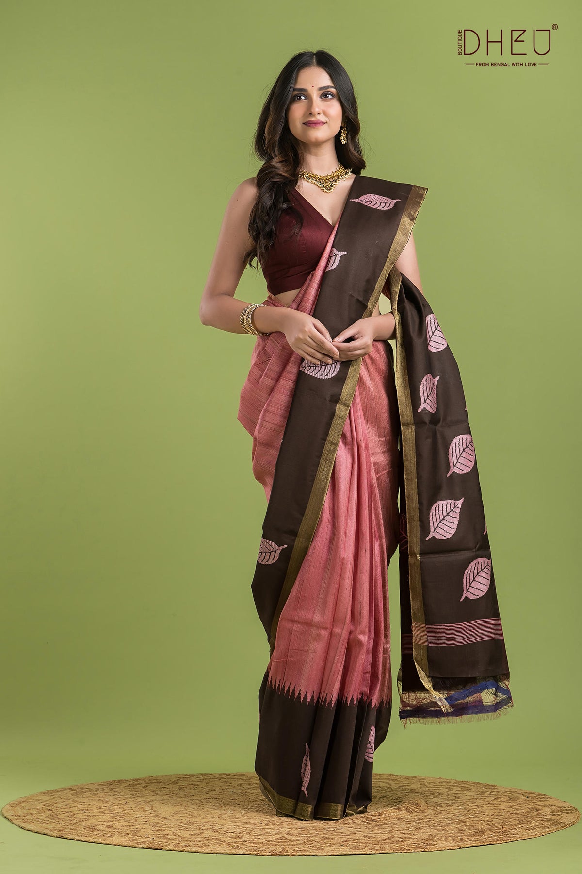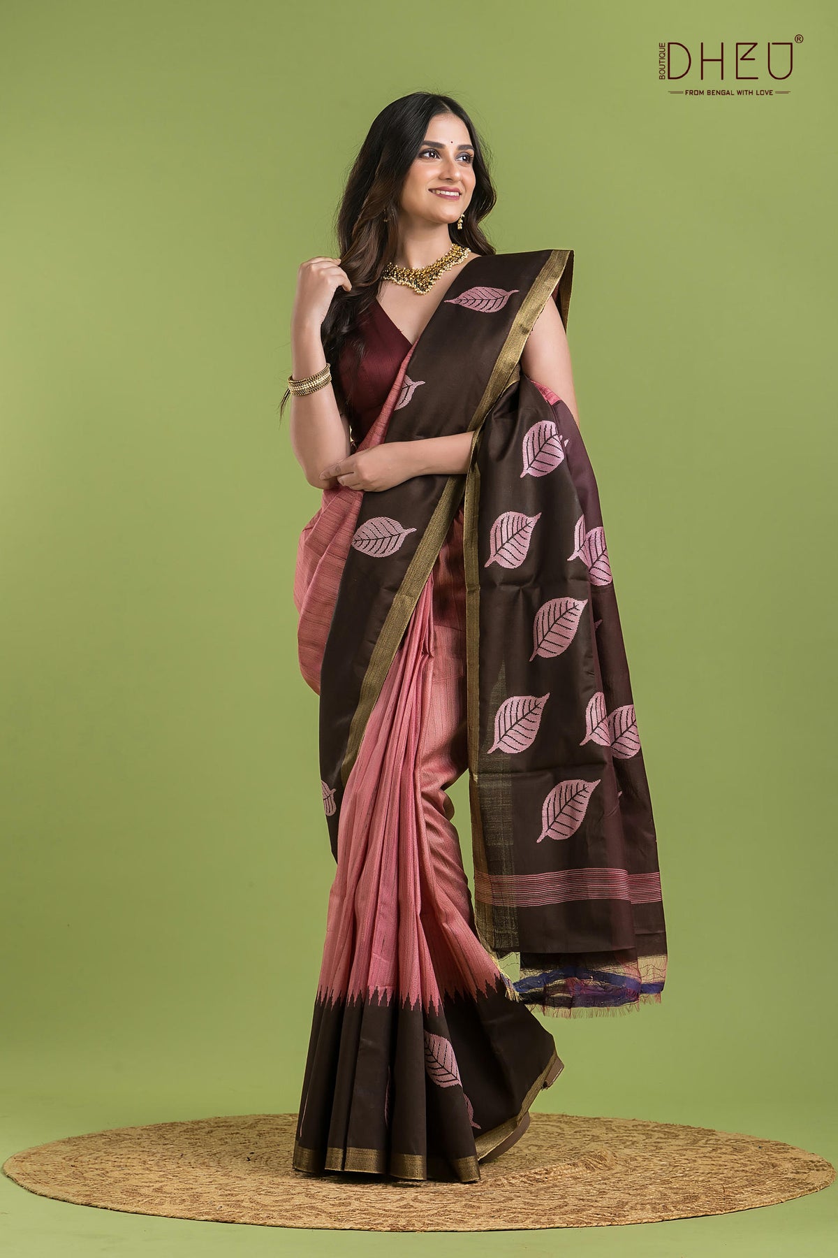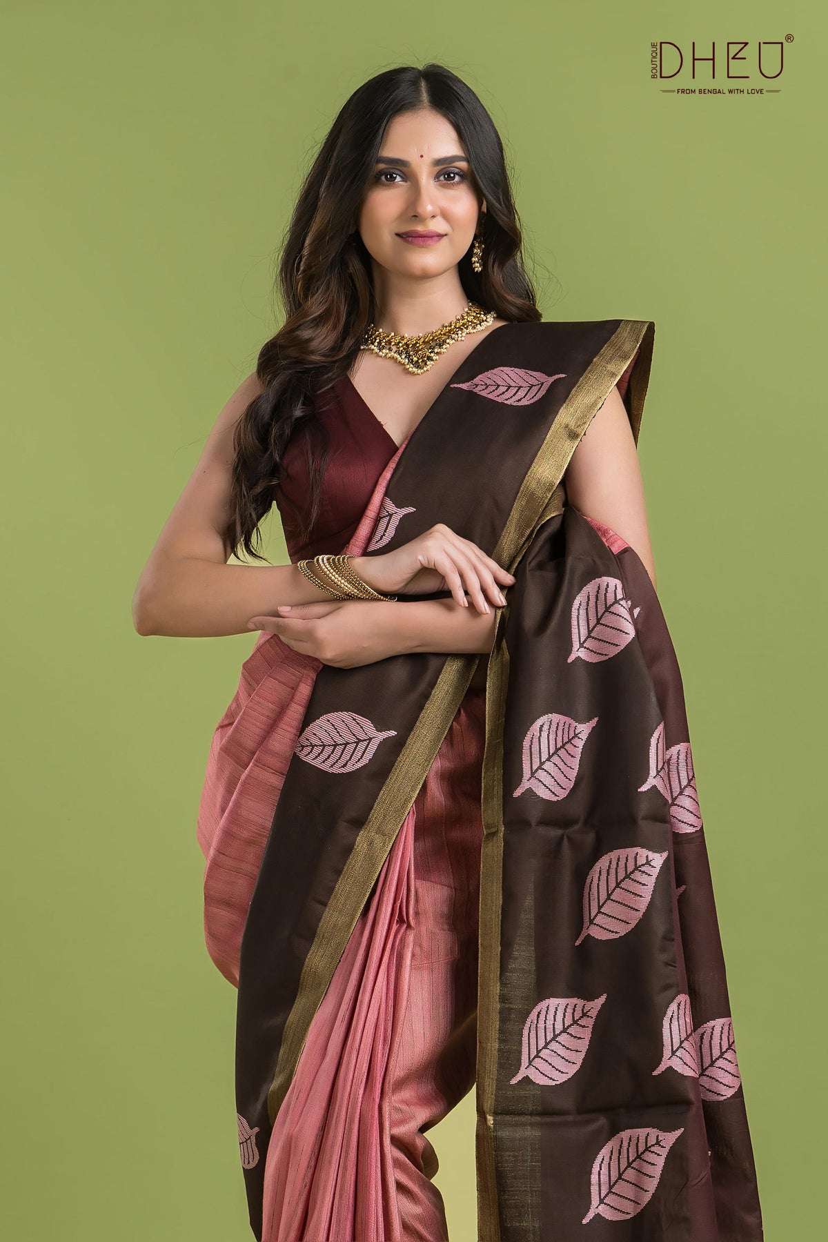 • Saree Color :-Dusty Rose & Chocolate Brown