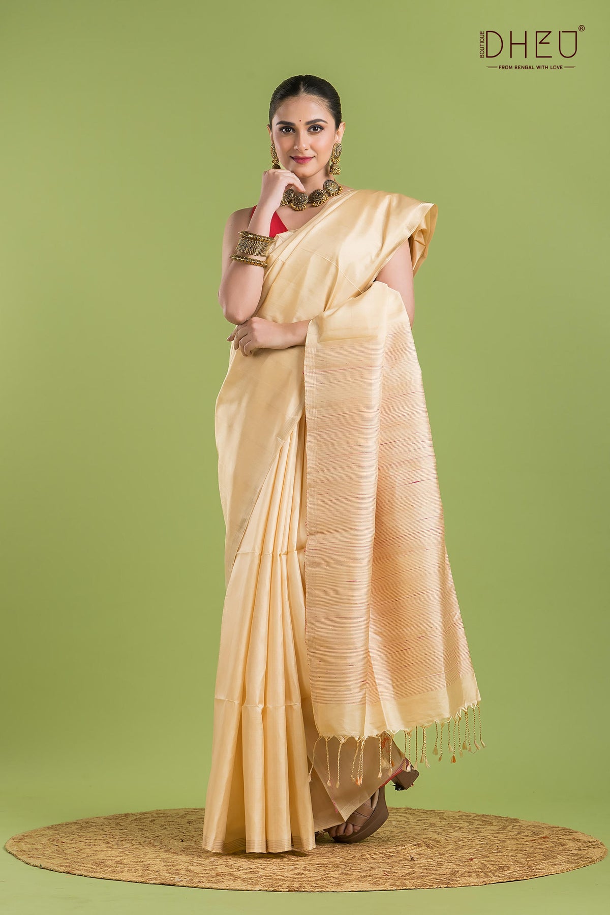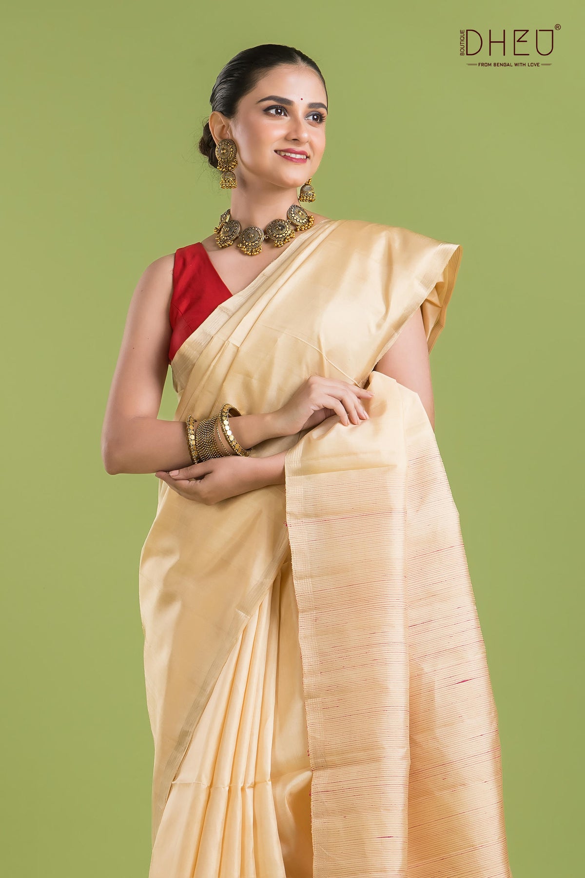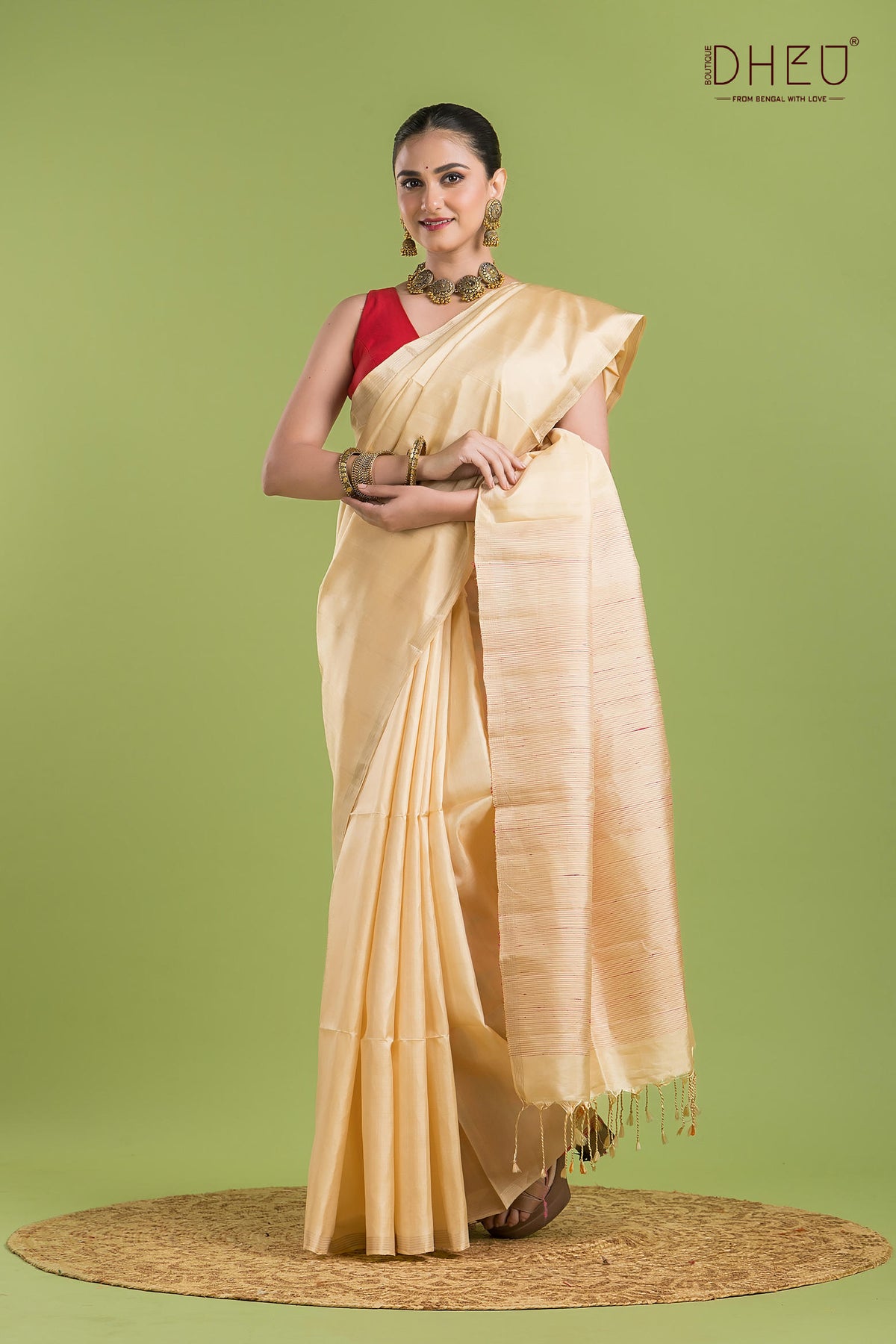 • Saree Color :- Golden-Cream