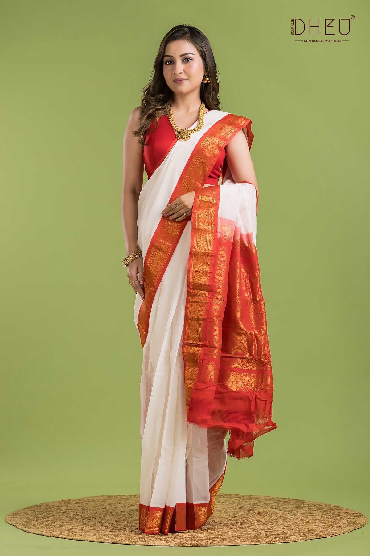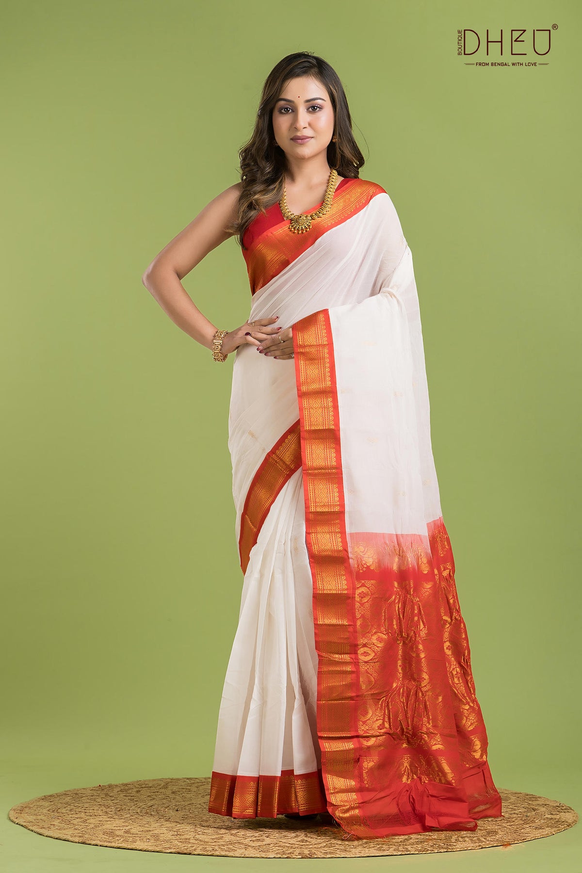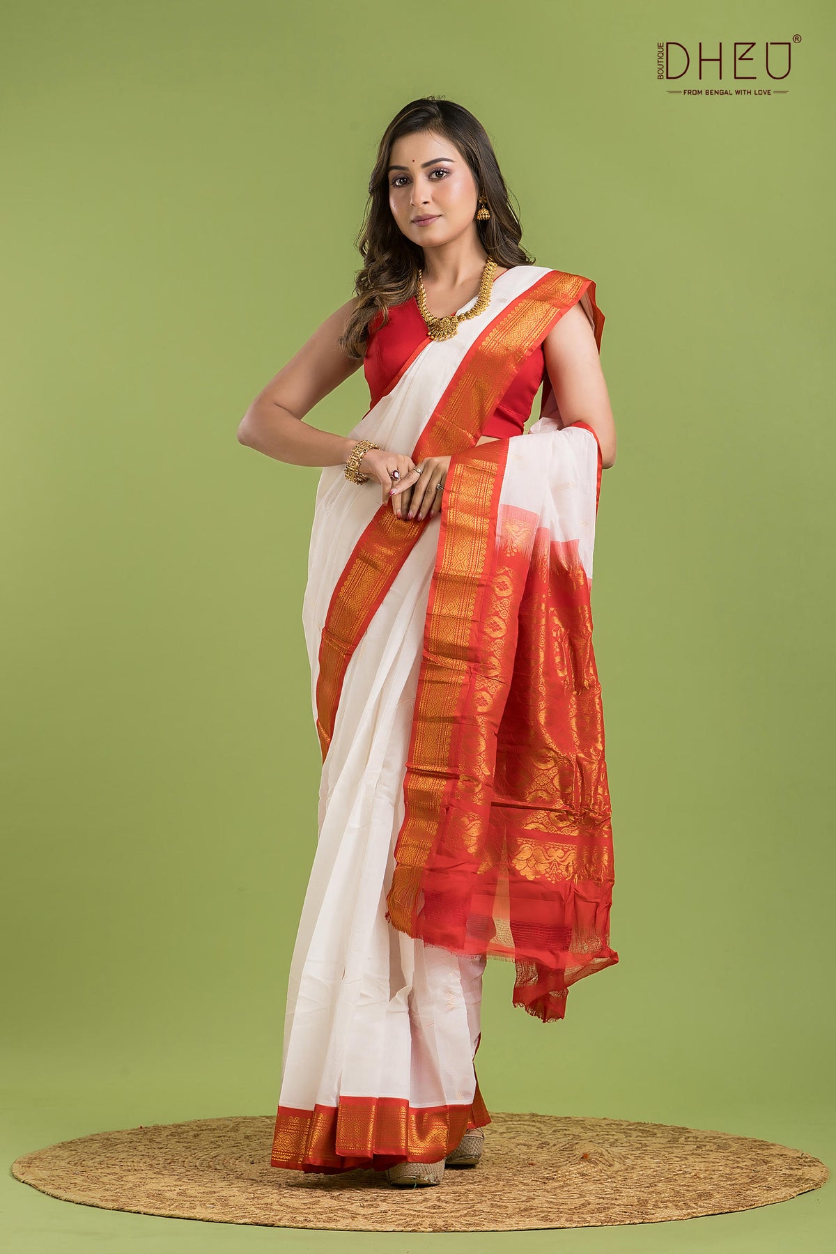 • Saree Color :-White with Rust Red