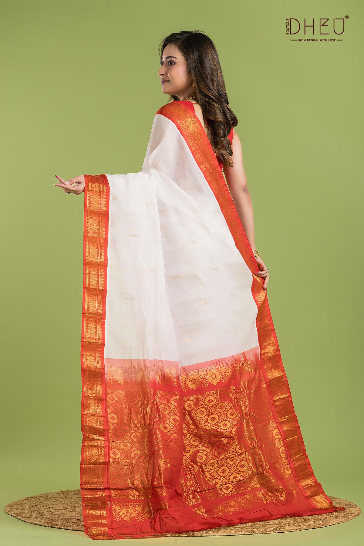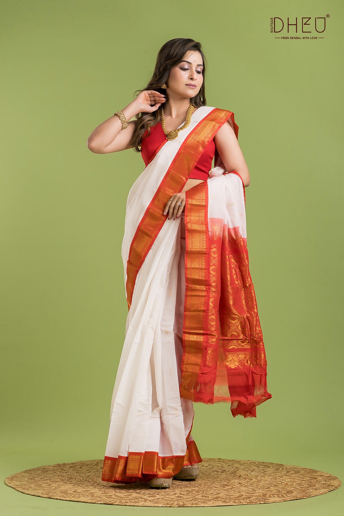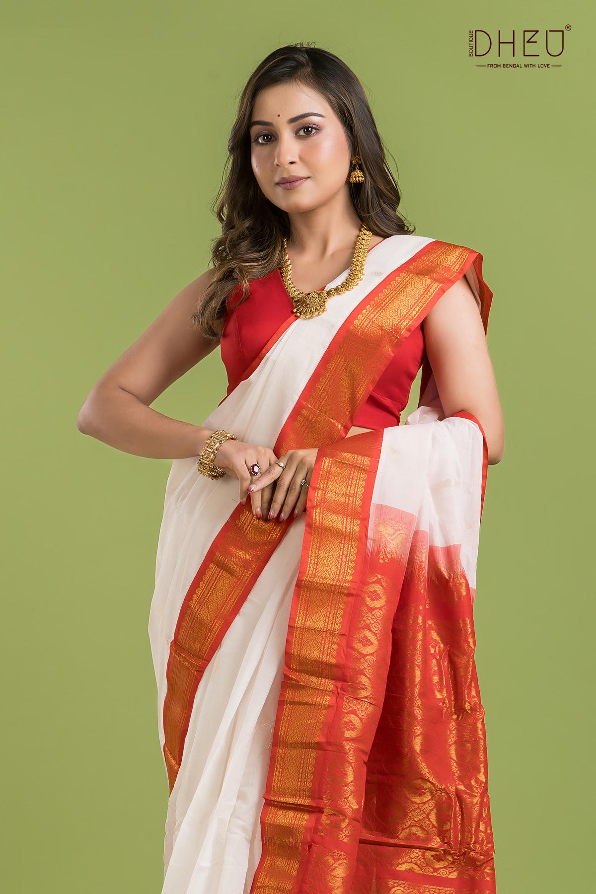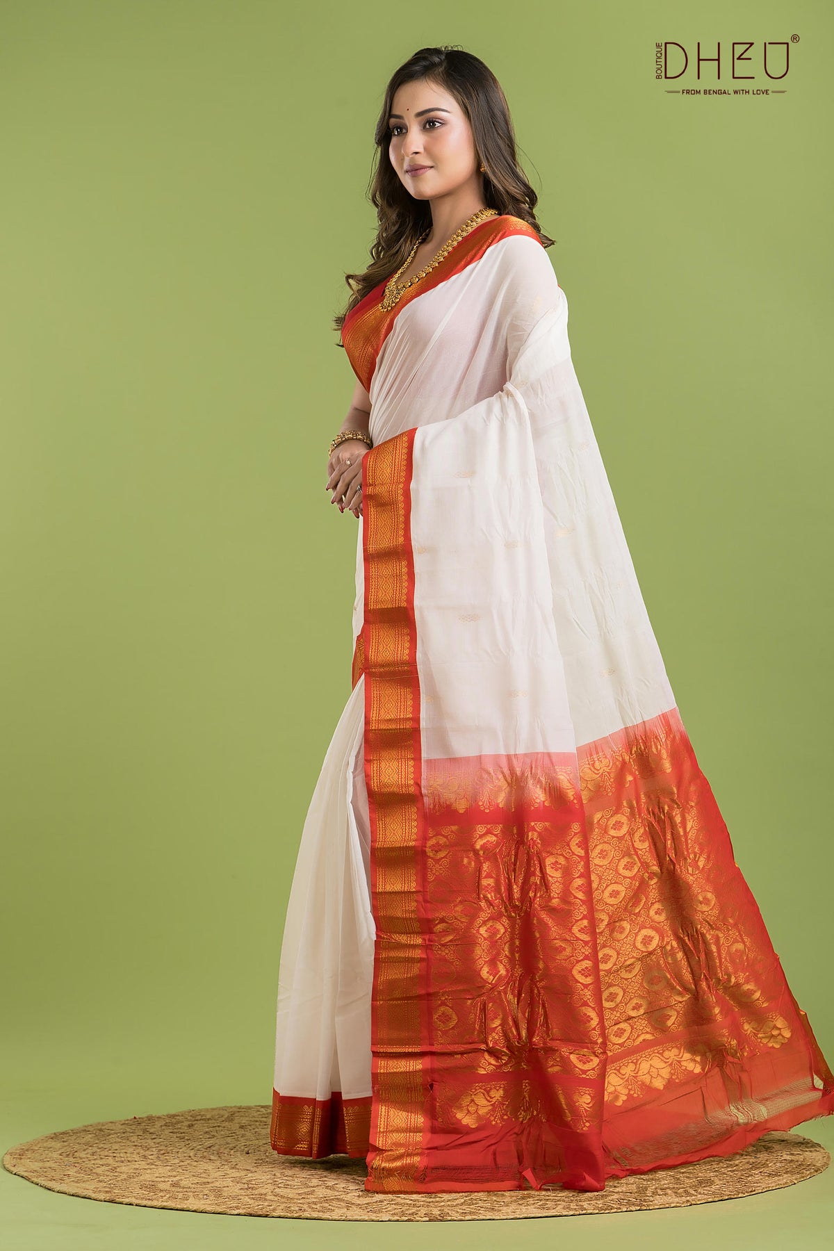 • Saree Color :-White with Rust Red