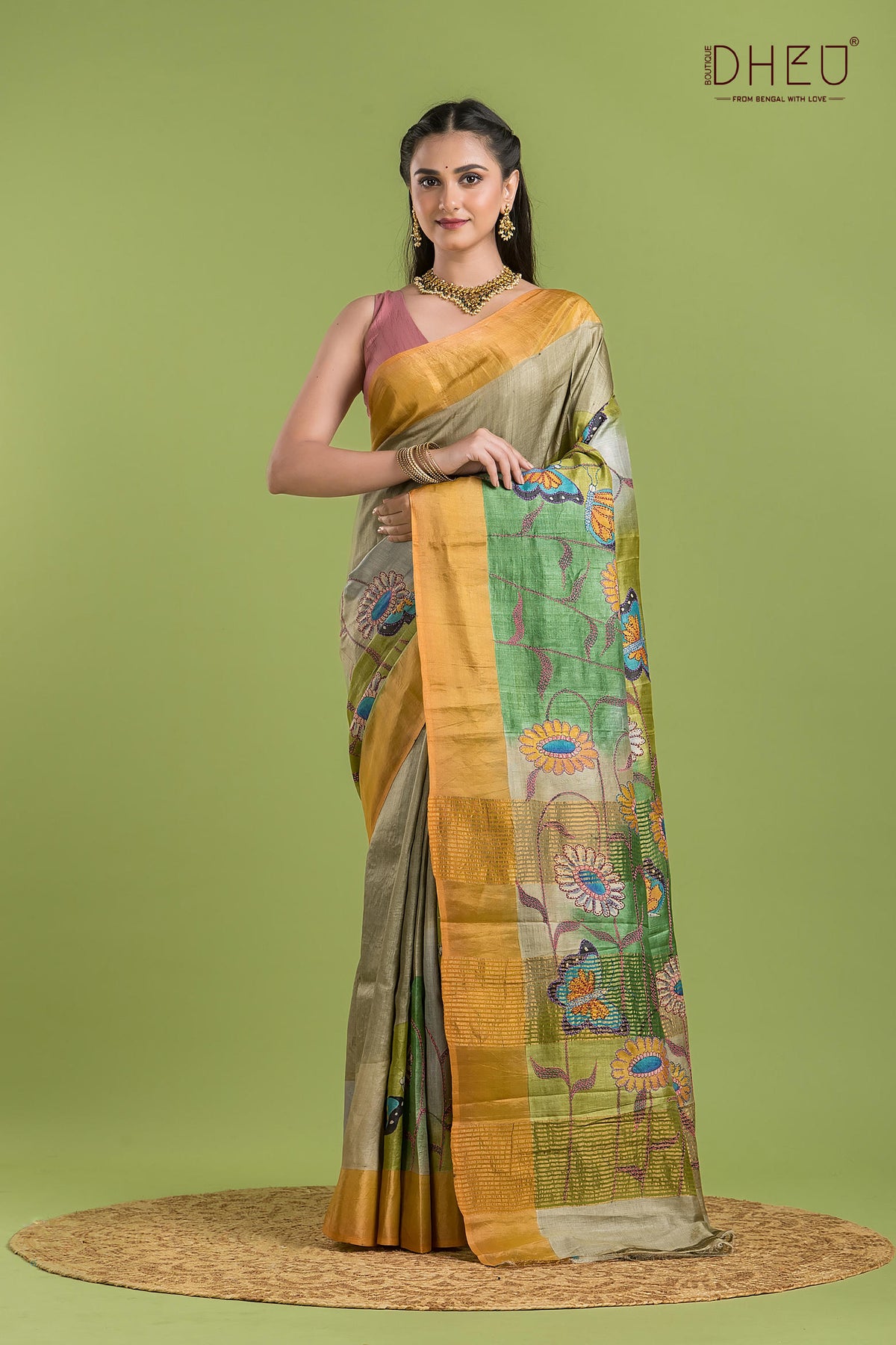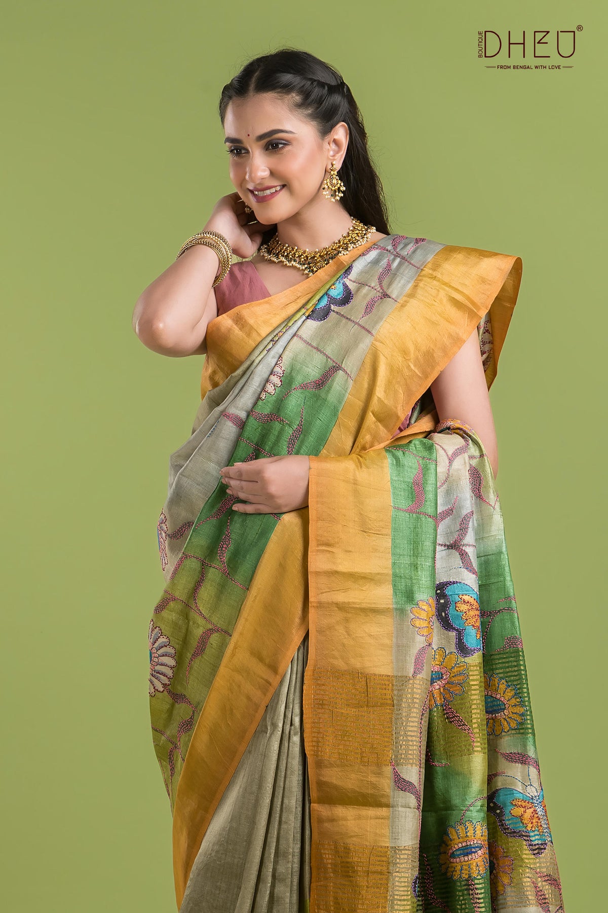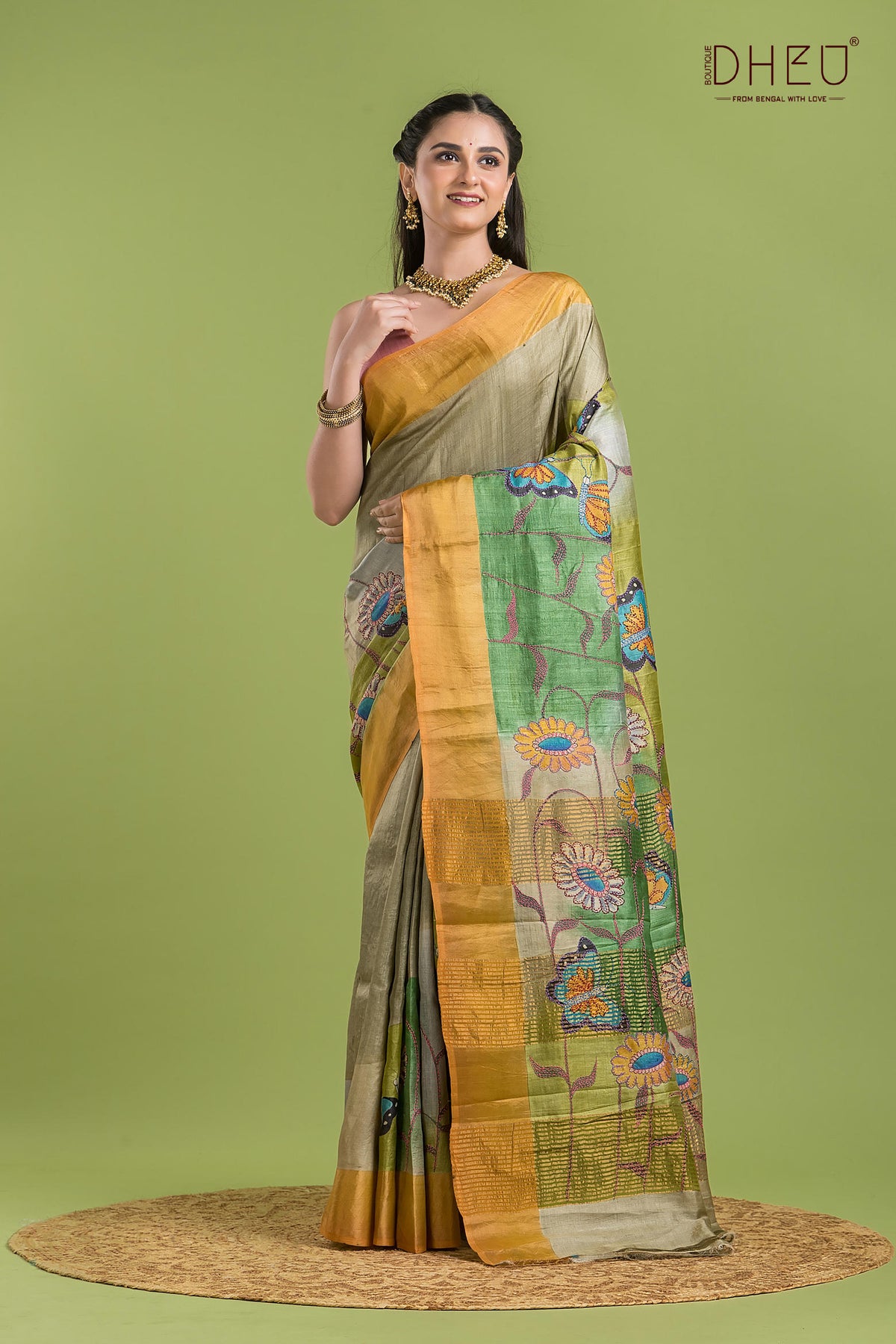 • Tussar Kantha Saree