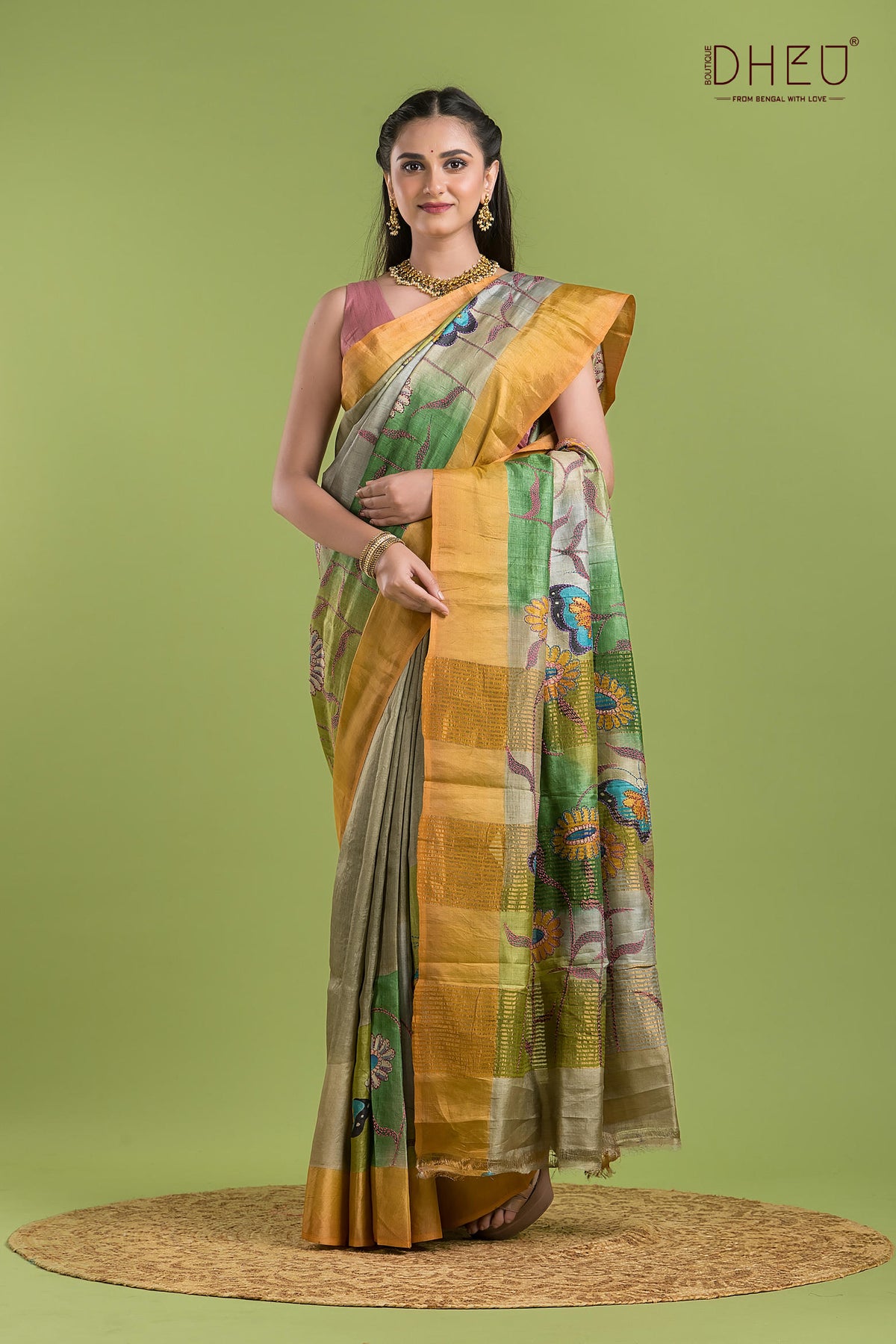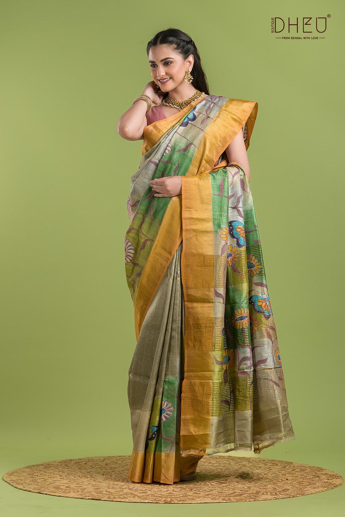 • Saree Color :- Cream wit Golden Yellow & Olive Green
