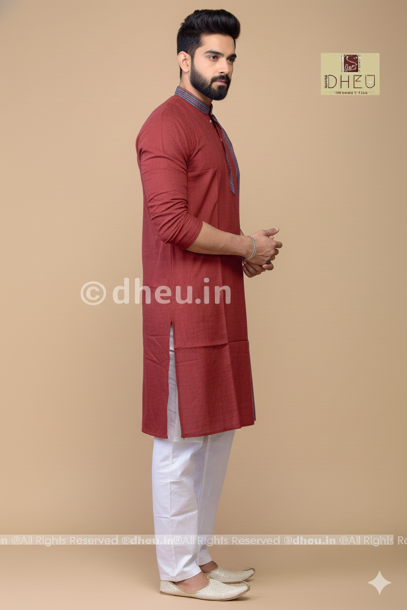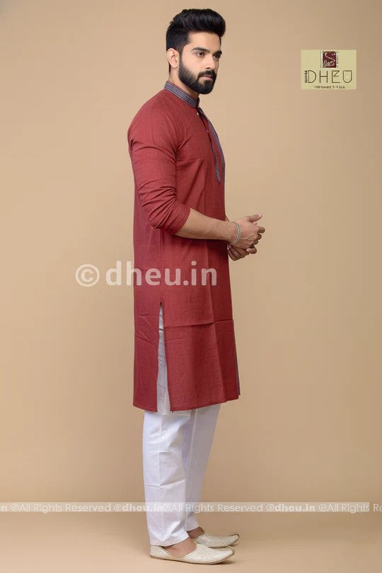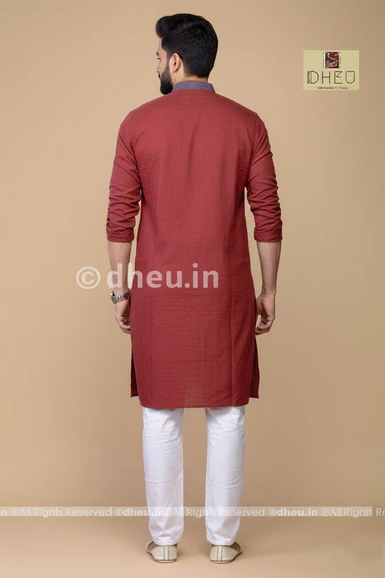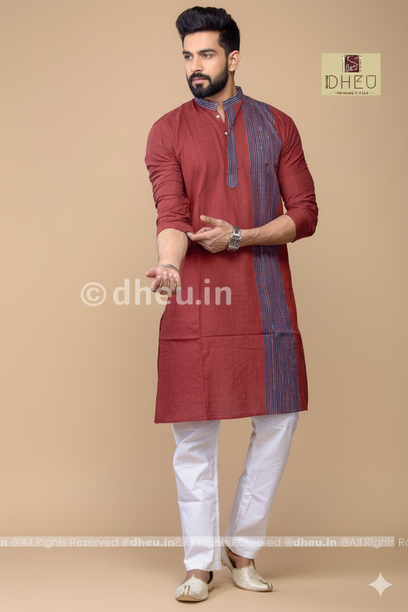- Handwoven Maroon Cotton Kurta for Men