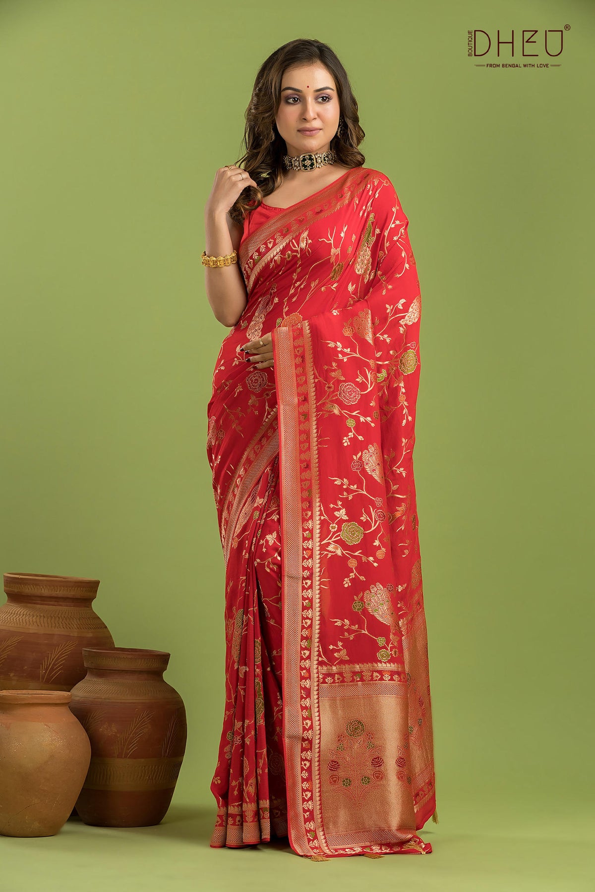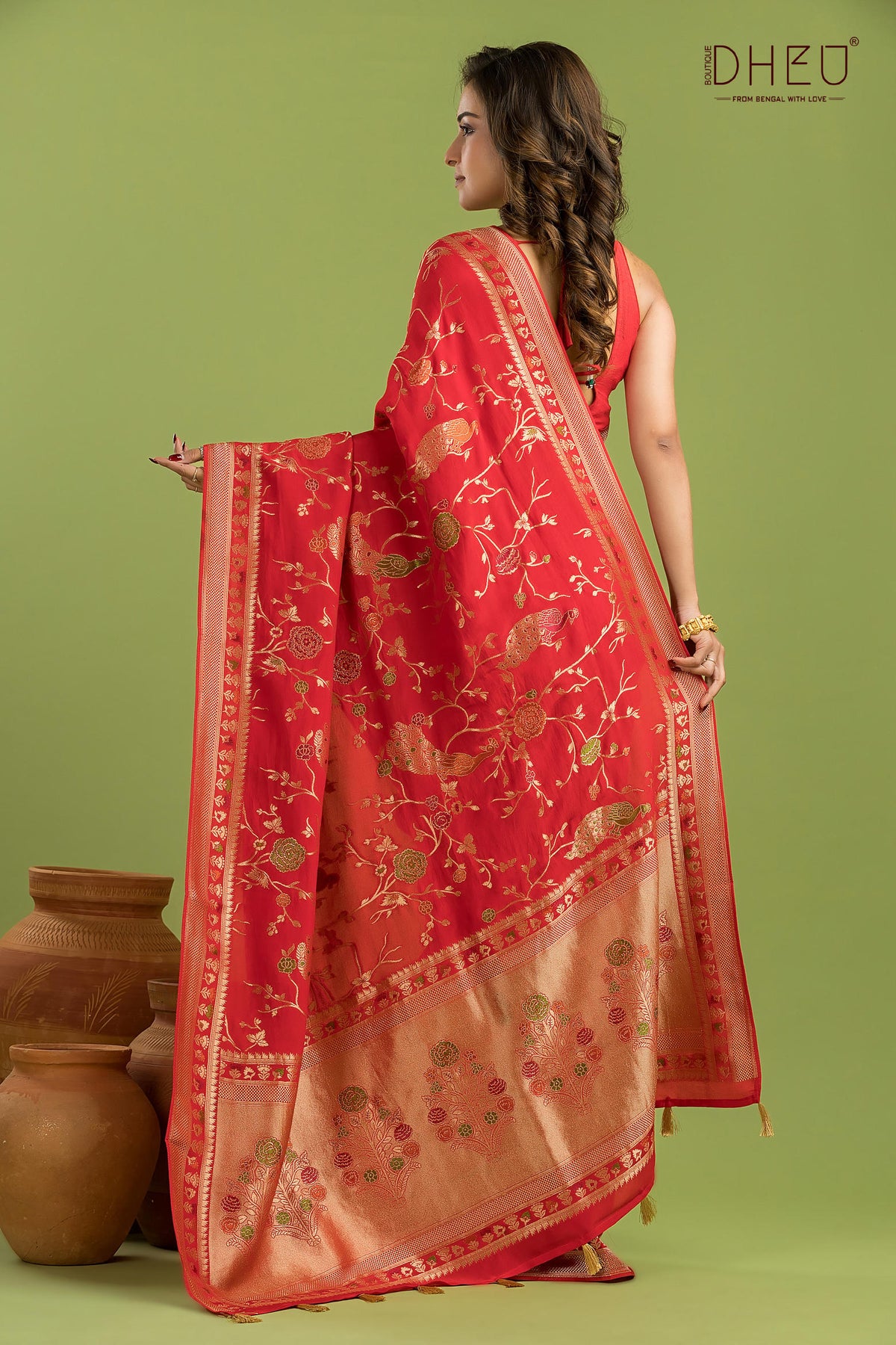 • Designer Handwoven Mushru Benarasi Silk Saree