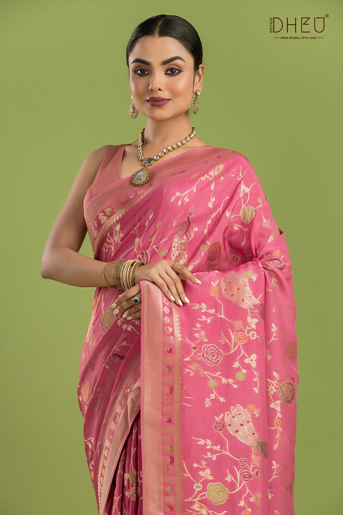 • Designer Handwoven Mushru Benarasi Silk Saree