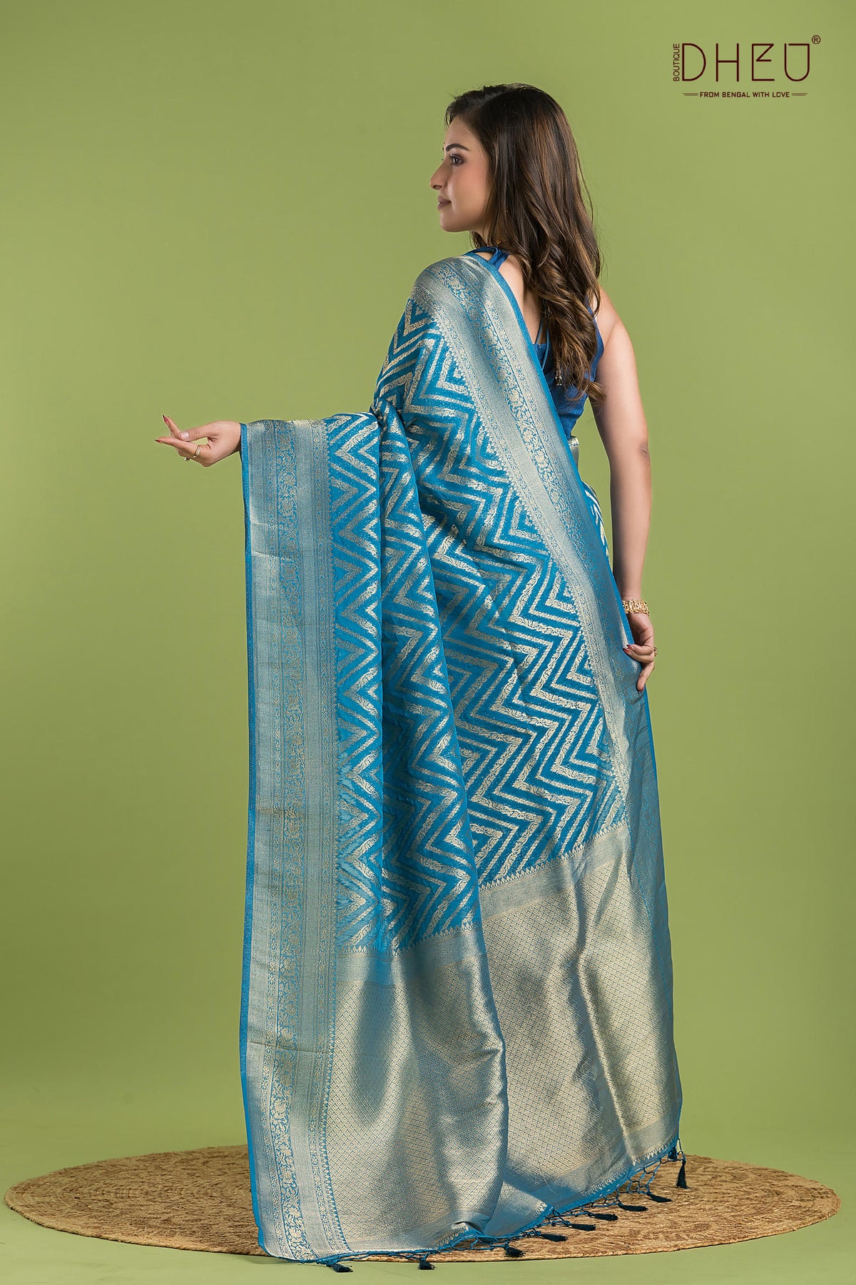 Embrace the timeless allure of Banaras with our Handwoven Khaddi Silk Saree. This masterpiece features a Aqua Blue base, beautifully contrasted by a shimmering Silver zari chevron pattern. Crafted for the woman who appreciates the "slow fashion" movement, this saree is a soulful tribute to India’s rich weaving heritage.