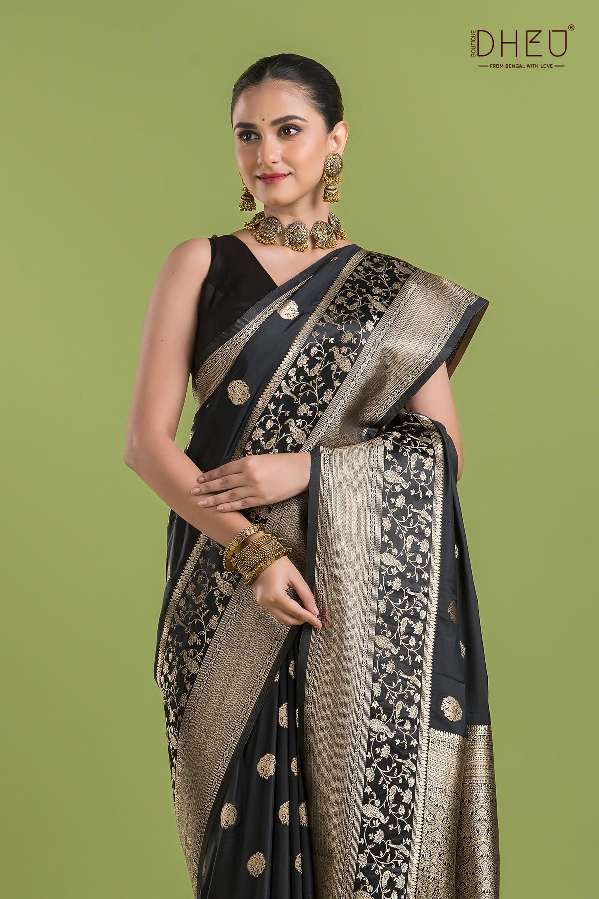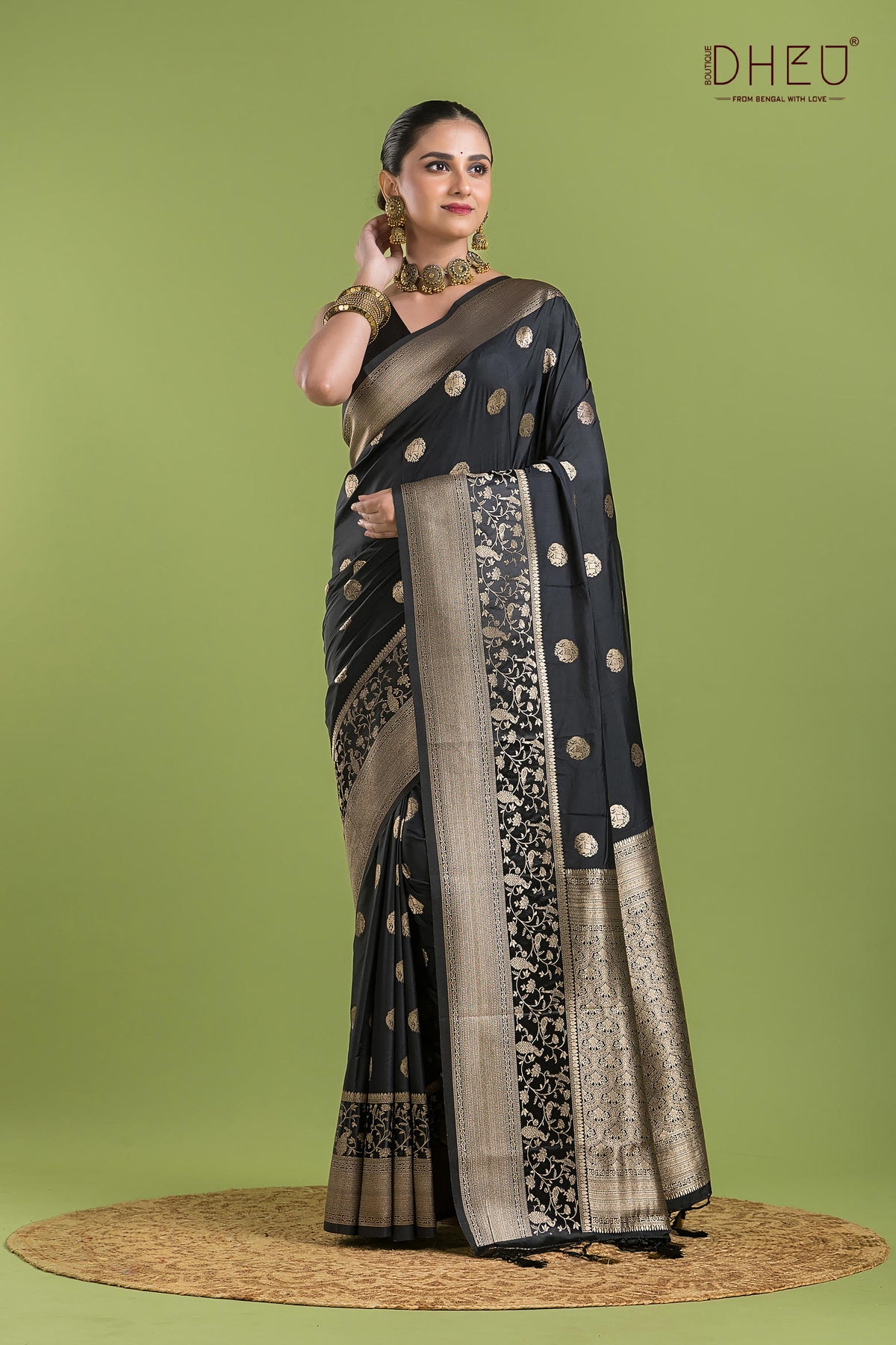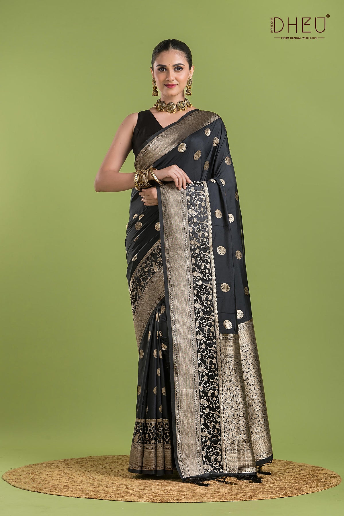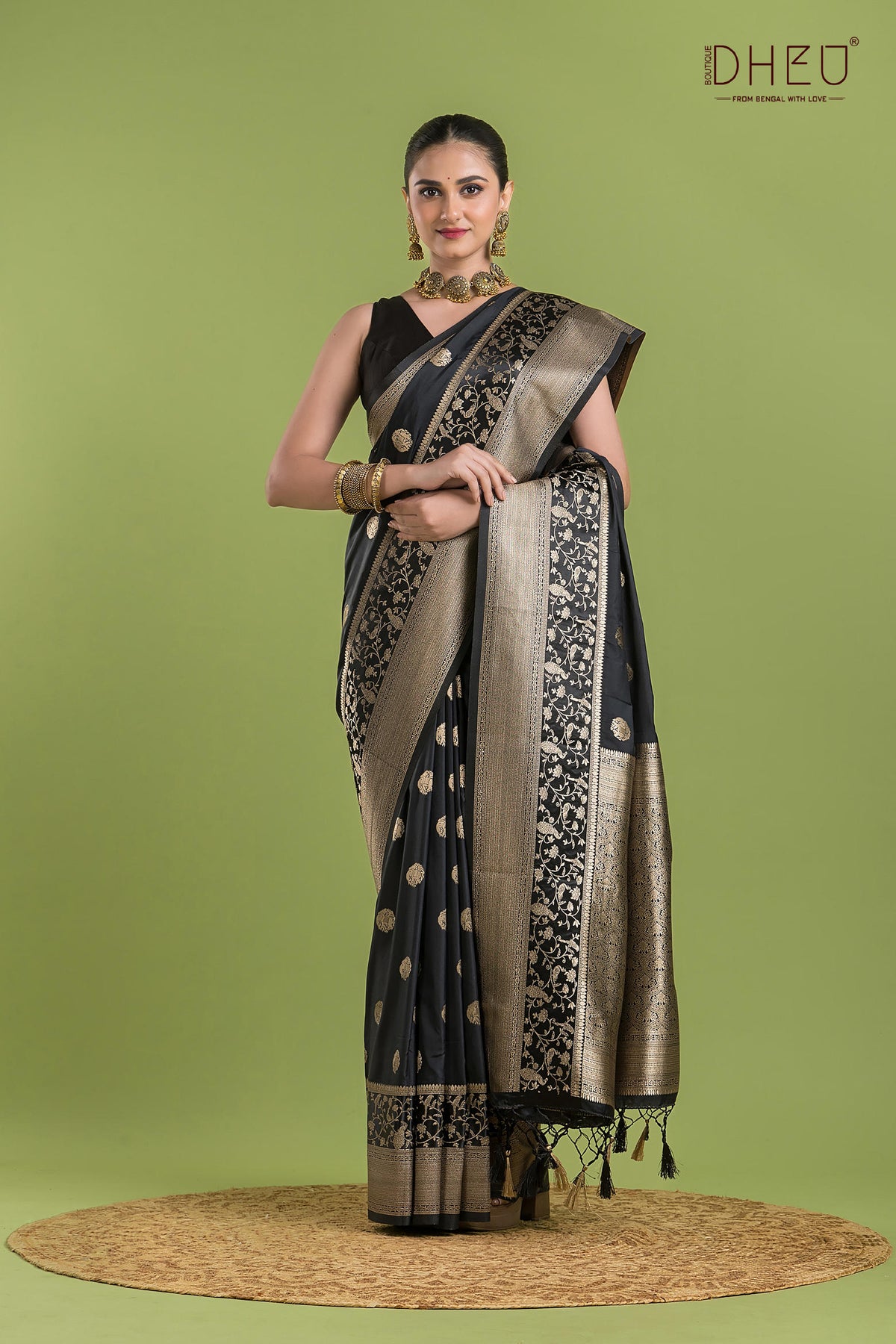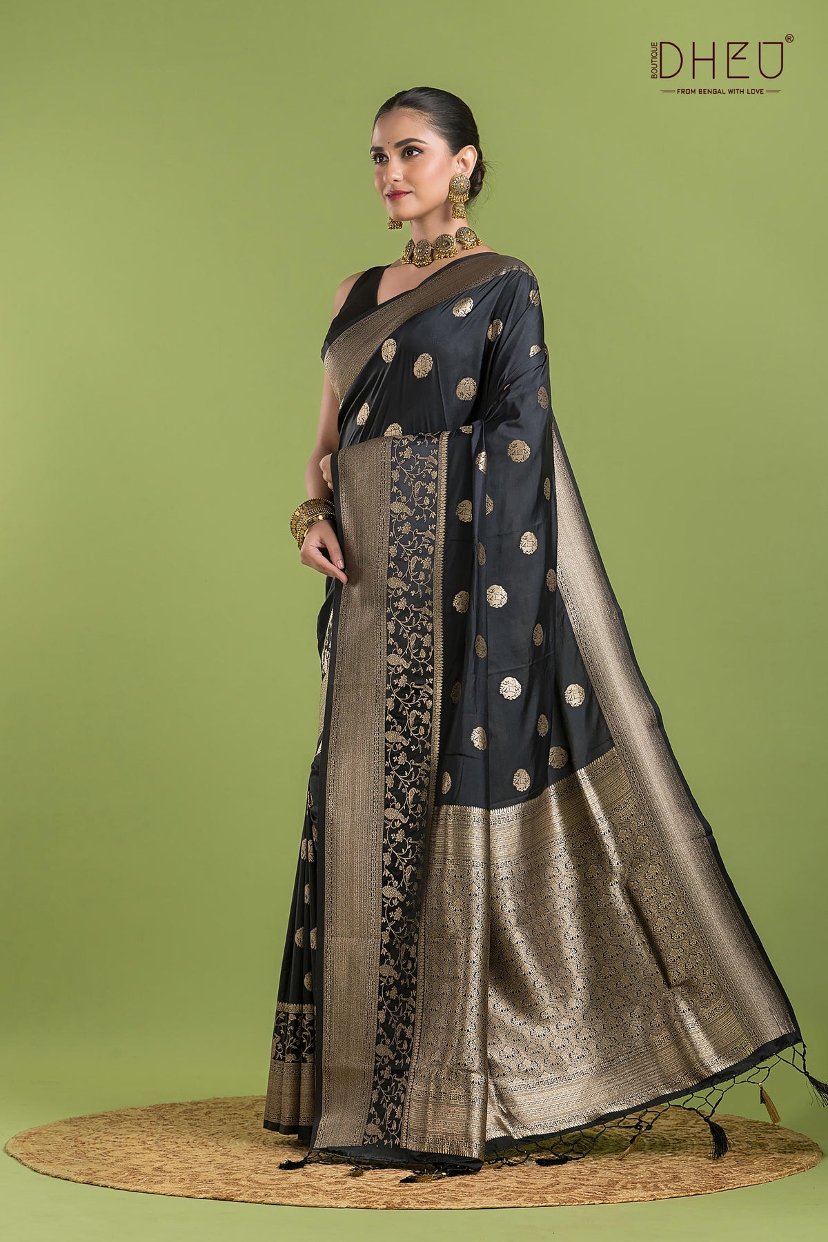 • Saree Color :- Black with Copper Zari