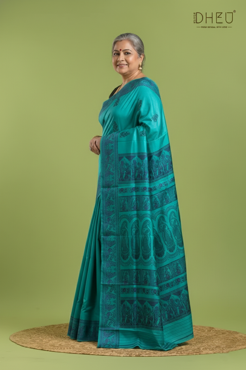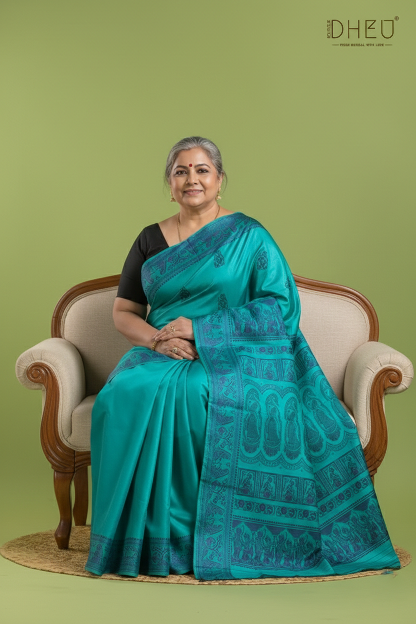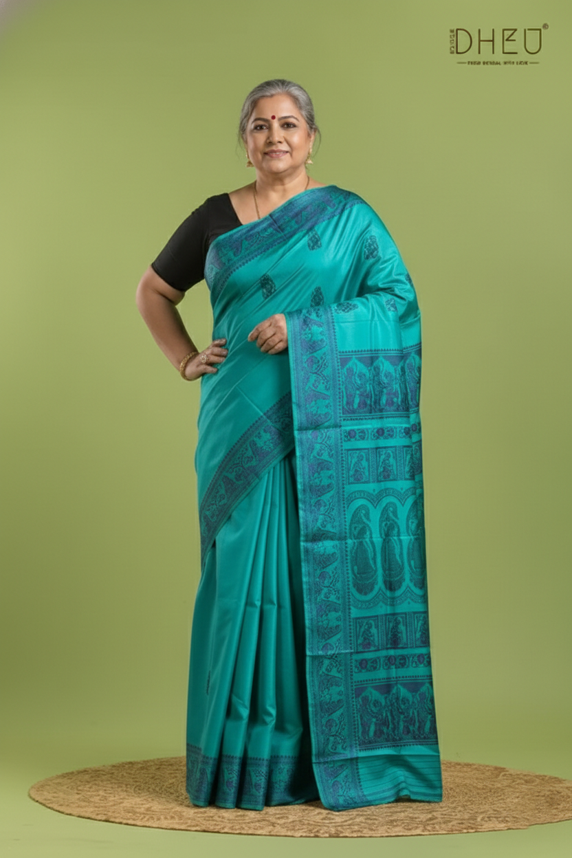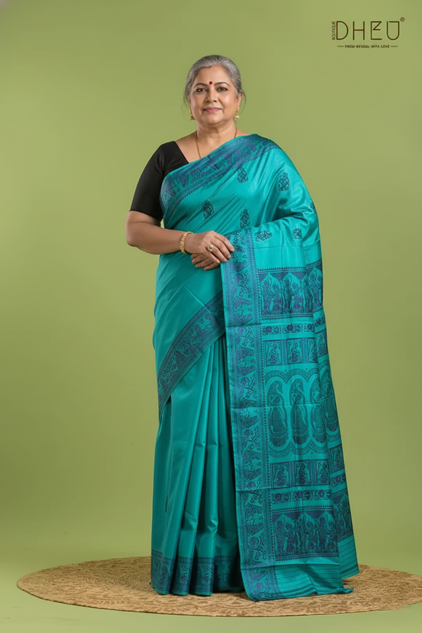 Own a piece of living history with our Pure Baluchari Silk Saree. Originating from the heritage looms of Bishnupur, these sarees are more than just garments—they are hand-woven tapestries that narrate timeless tales from Indian mythology. Crafted from 100% Pure Silk, providing a rich, heavy texture and a natural luster that lasts for generations. Our sarees come with the assurance of purity, ensuring you invest in genuine, high-grade silk.