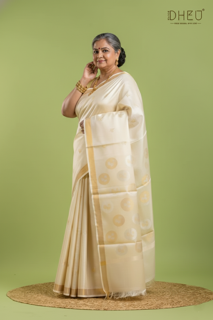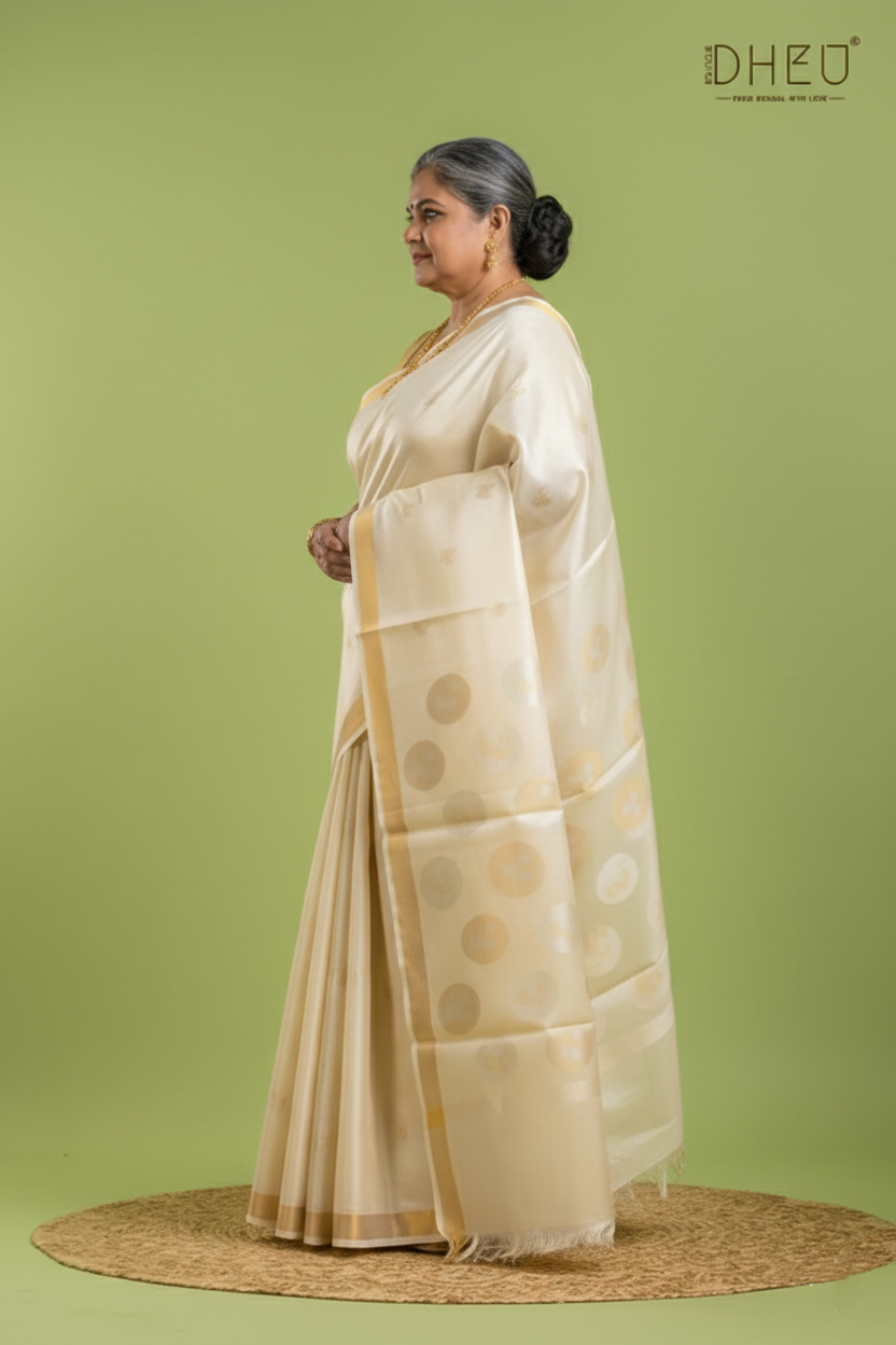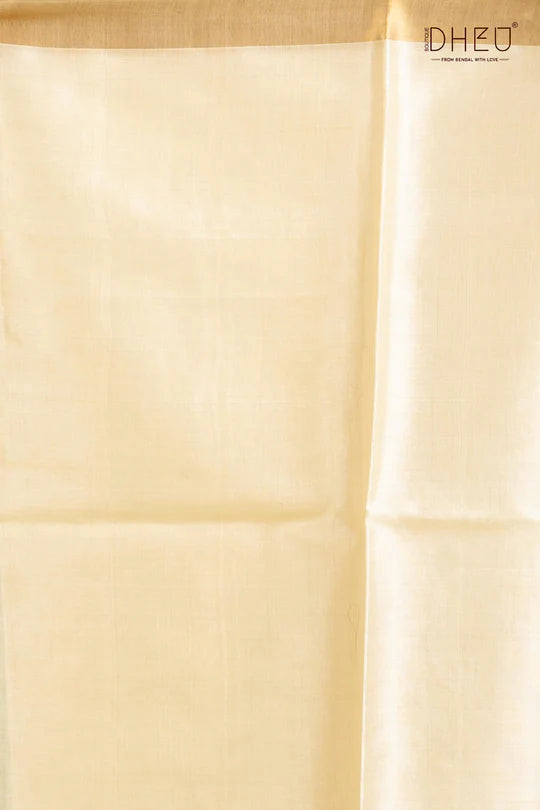 Discover the understated luxury of this Pure Tussar Silk Saree, crafted from 100% natural Tussar (Kosa) silk. Known for its rich texture, natural golden hue, and subtle sheen, This saree features a soft yet slightly coarse texture that gives it a distinctive character, making each piece unique. Traditional motifs, artistic weaves, and refined borders highlight the beauty of this heritage fabric, while its breathable nature ensures all-day comfort. Lightweight and graceful, it drapes beautifully, making it ideal for both daytime and evening wear.
