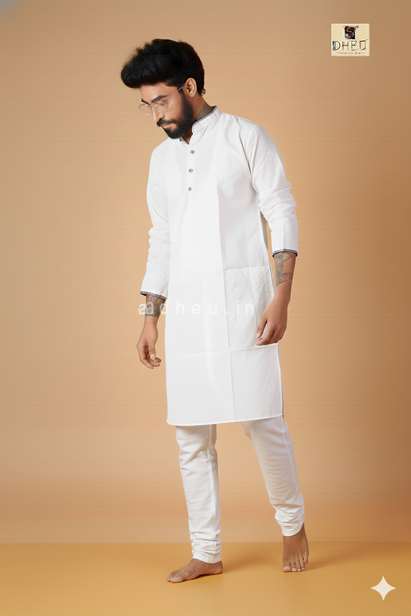 Sada -Kalo -Dheu Designer Puja Special Kurta